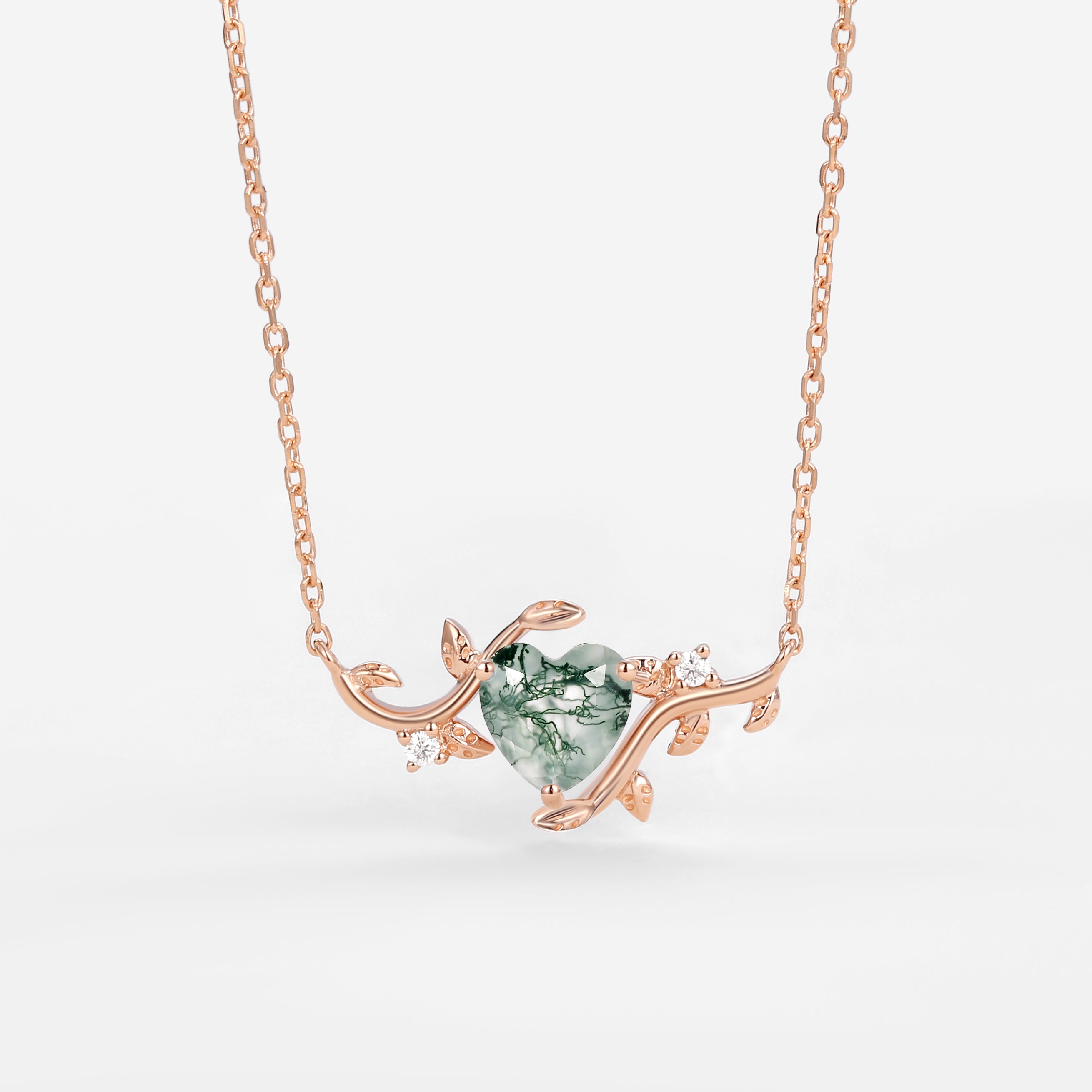 Natural Inspired Heart Moss Agate Leafy Necklace - Willow