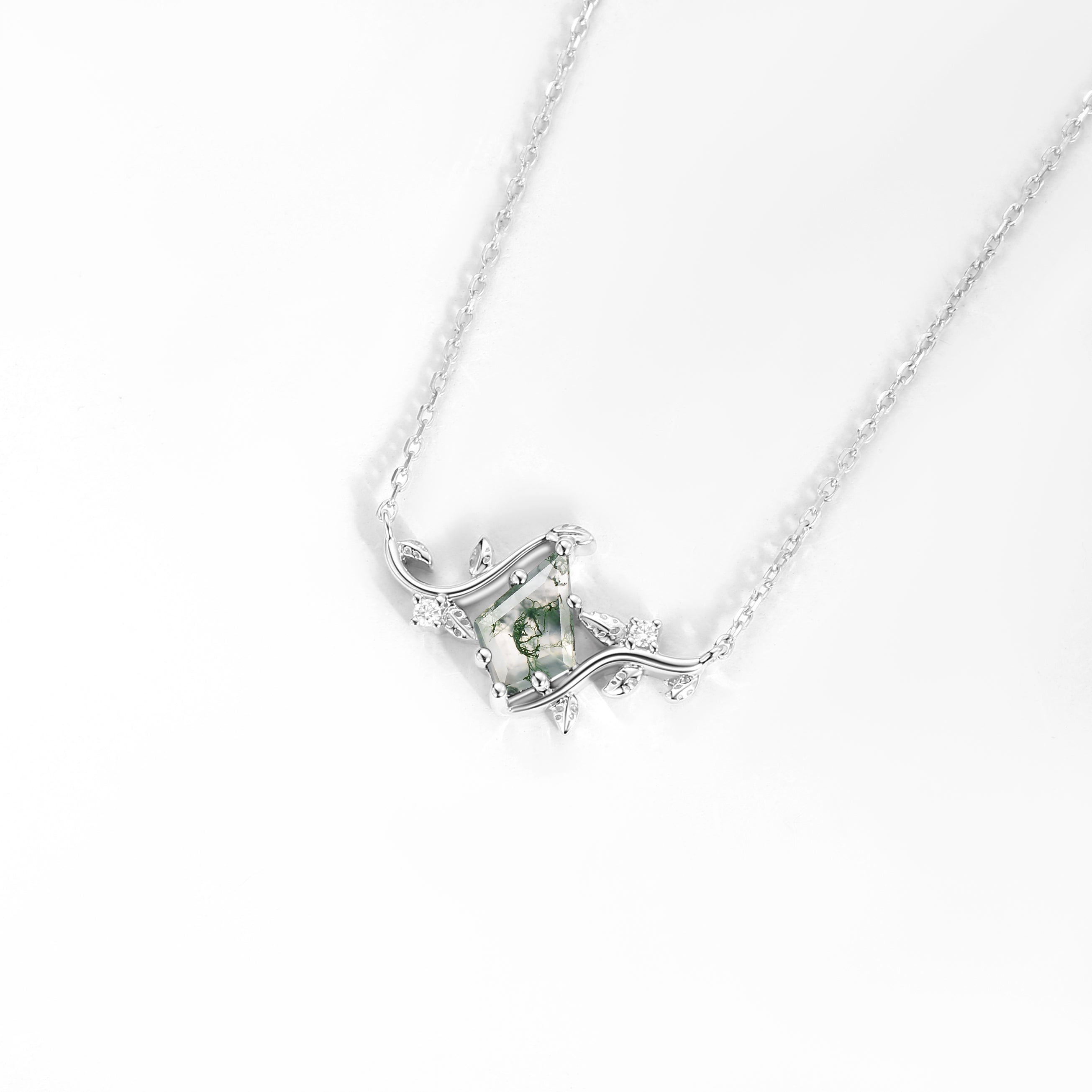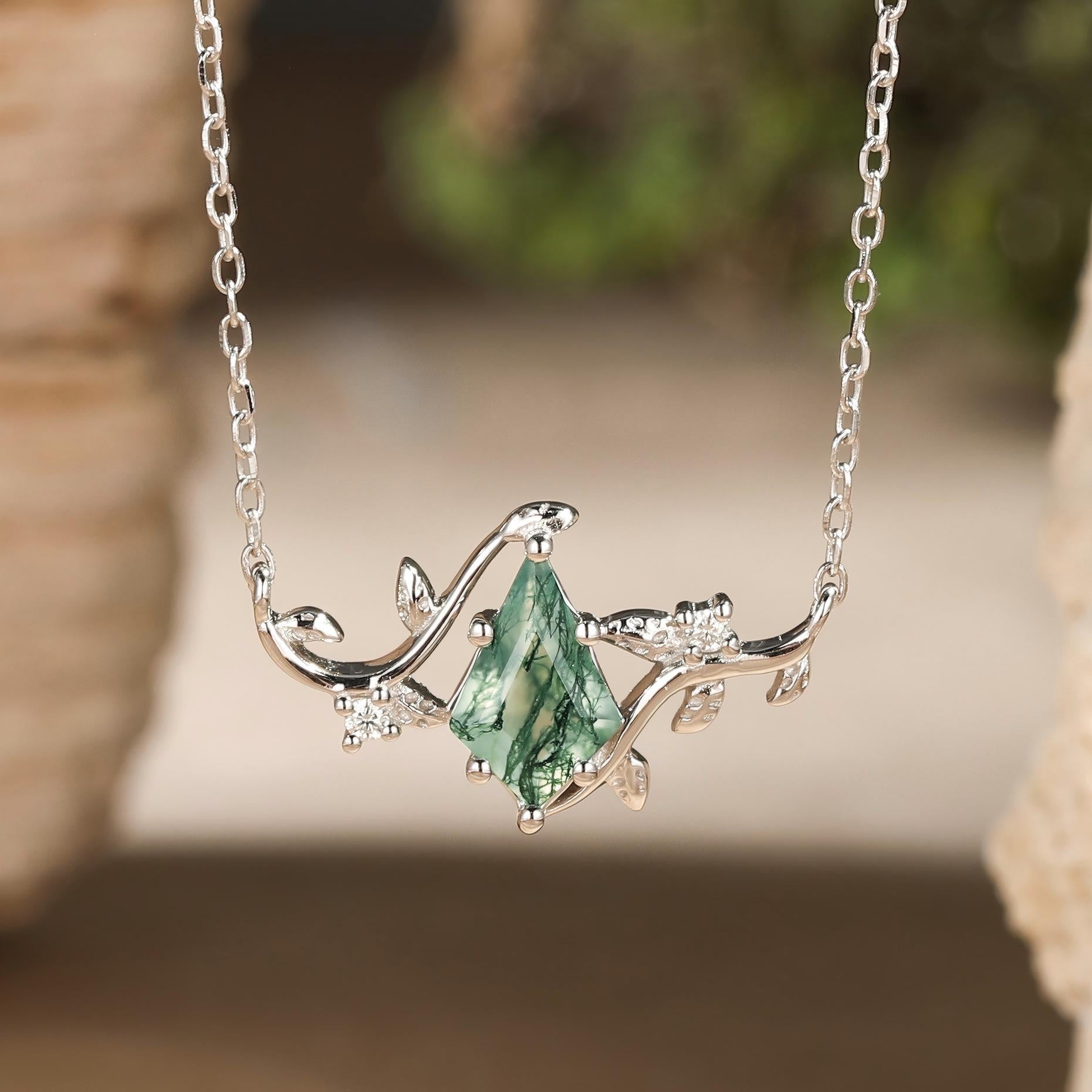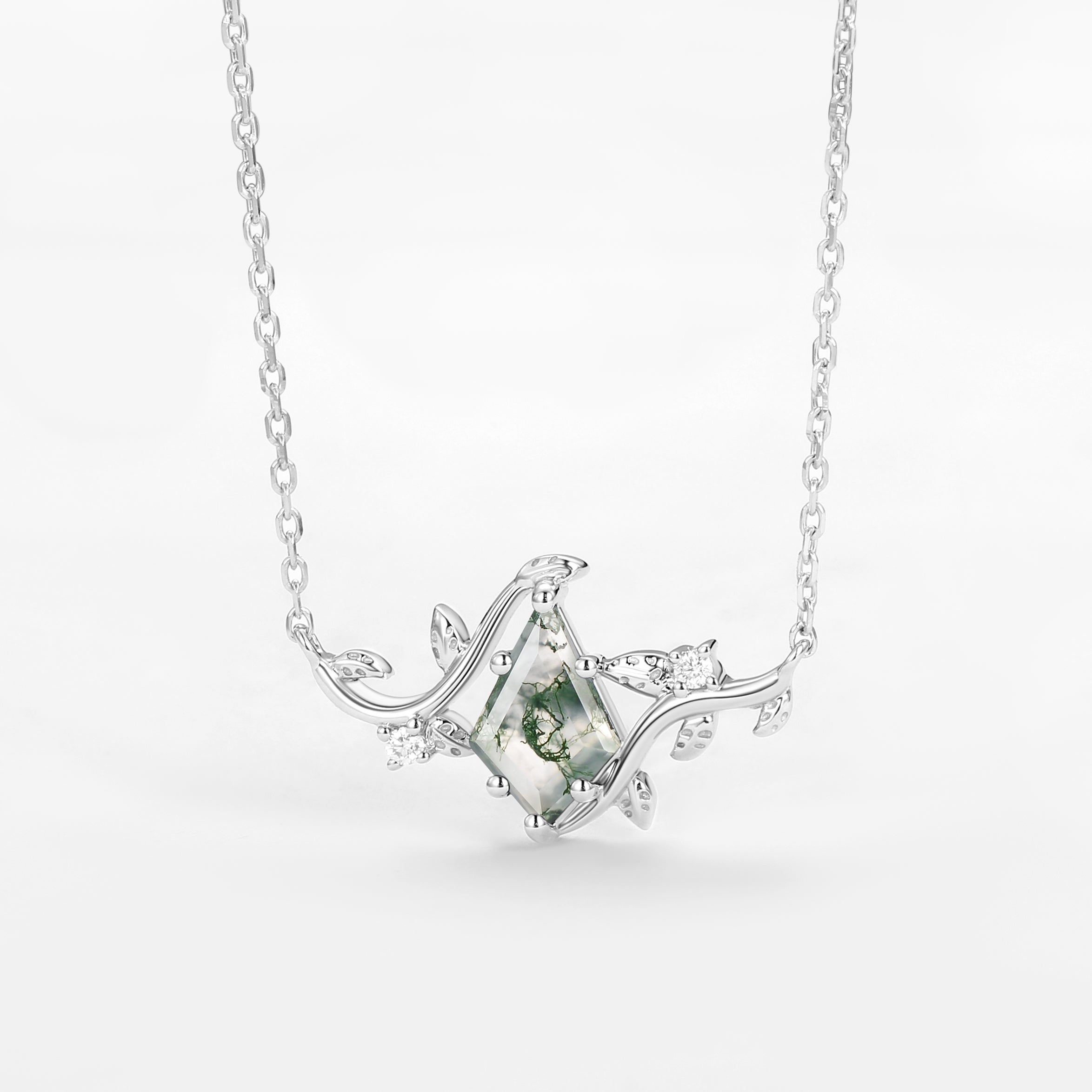Natural Inspired Moss Agate Kite Leafy Necklace - Willow