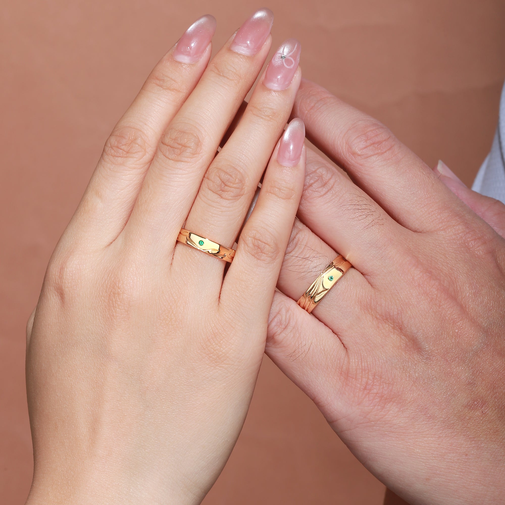 Vintage Round Lab Emerald Couple Ring Set 2pcs - Verve