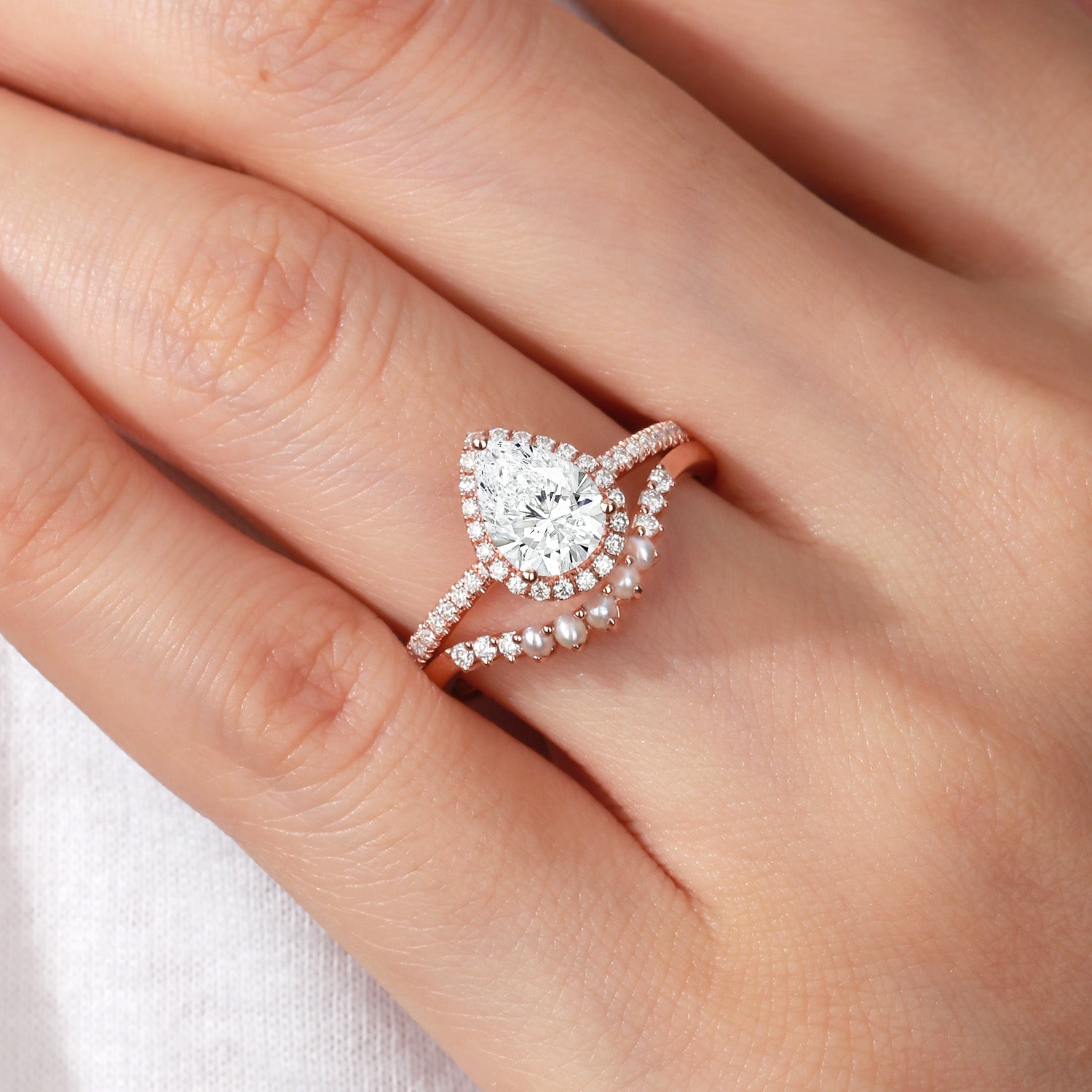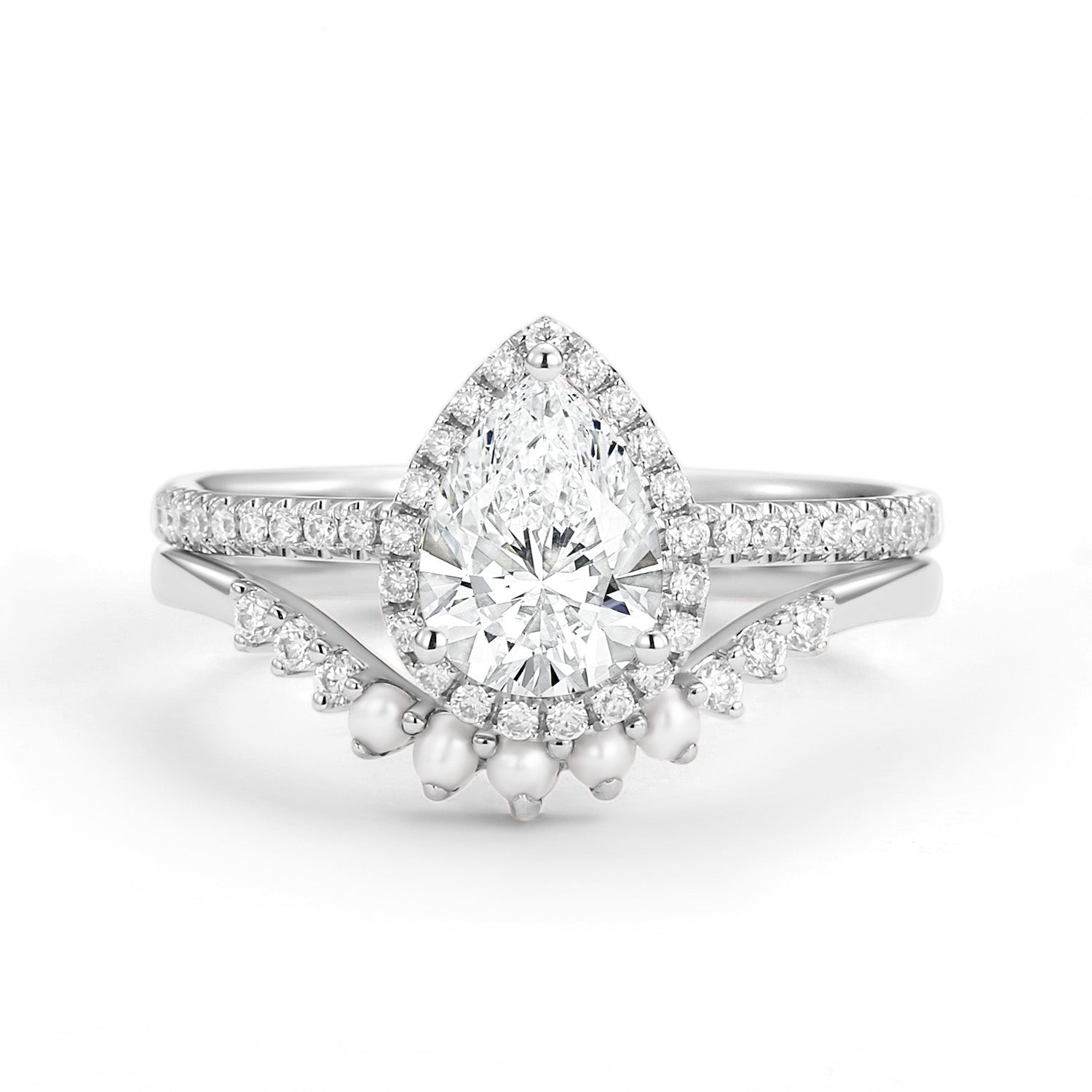 1.0ct Lab Grown Diamond Pear Halo Ring Set 2pcs