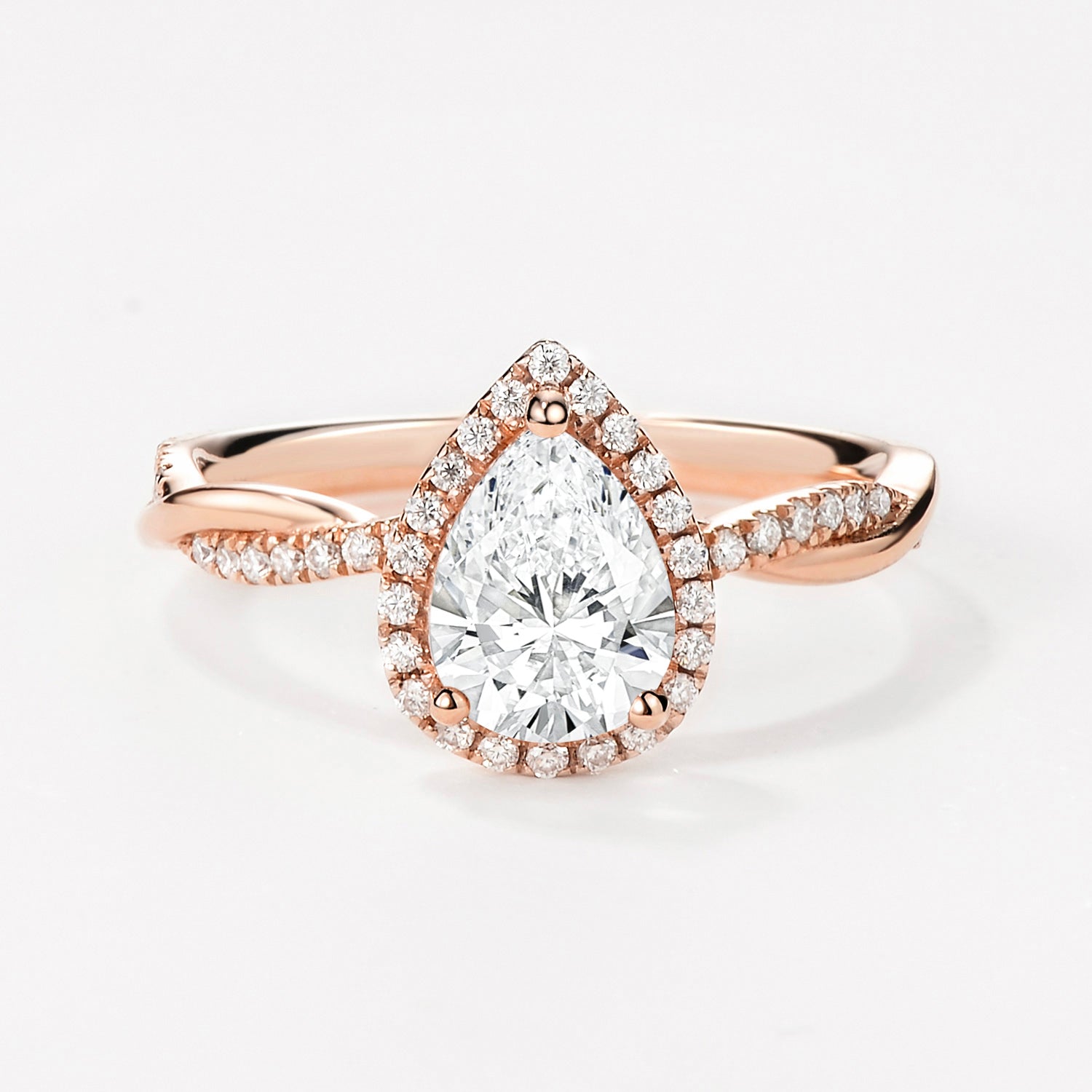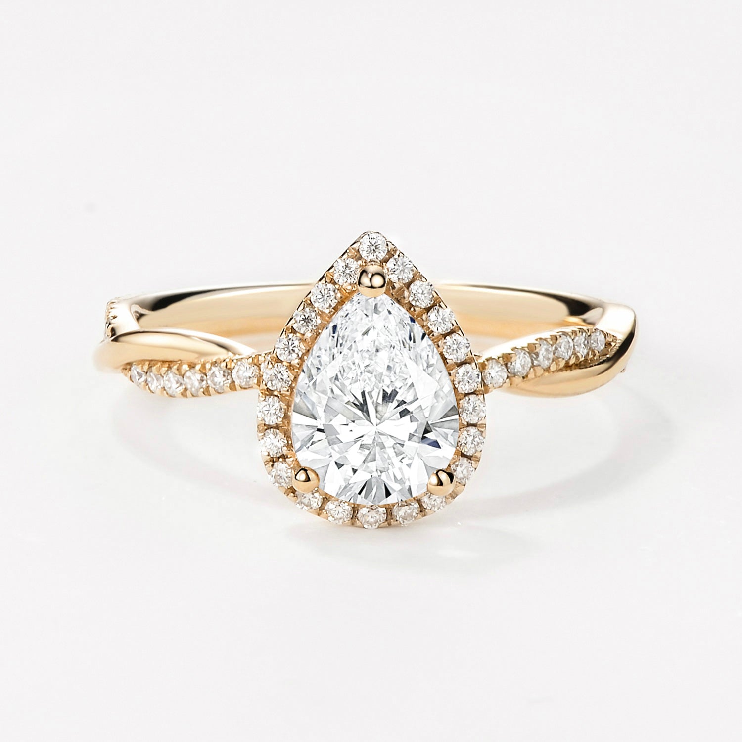 1.0ct Pear Shaped Lab Grown Diamond Infinity Halo Gold Ring