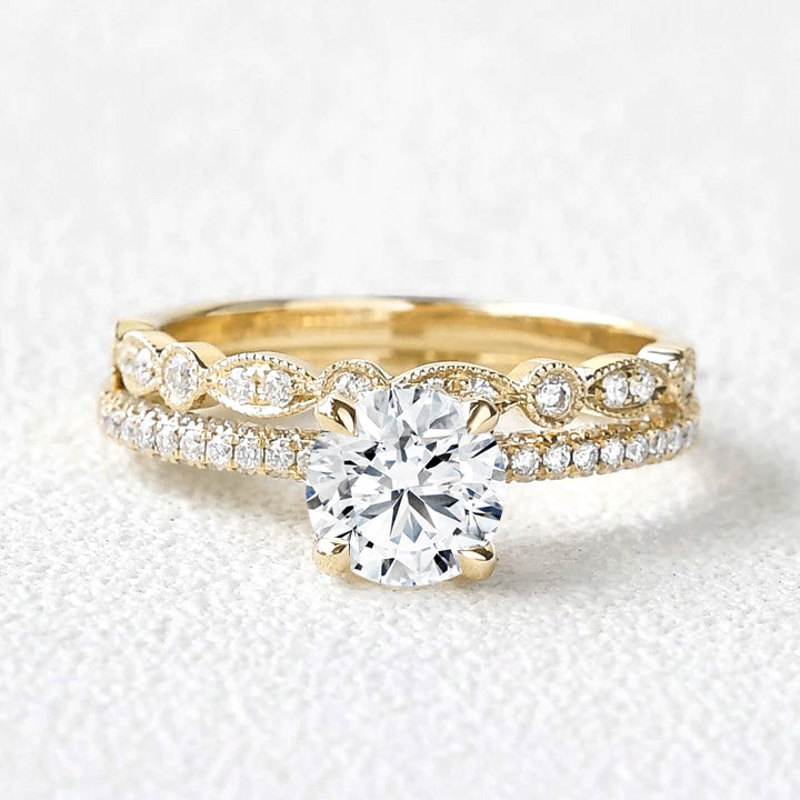 1.0-2.0ct Round Lab Grown Diamond Classic 4-Prong Solitaire Ring Sets 2PCS