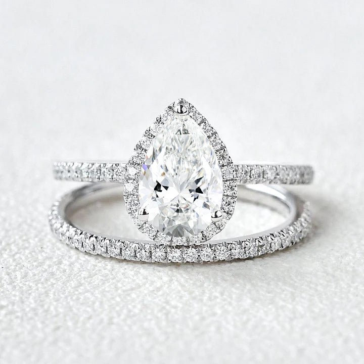 1.0ct Pear Lab Grown Diamond Halo Ring Set 2pcs