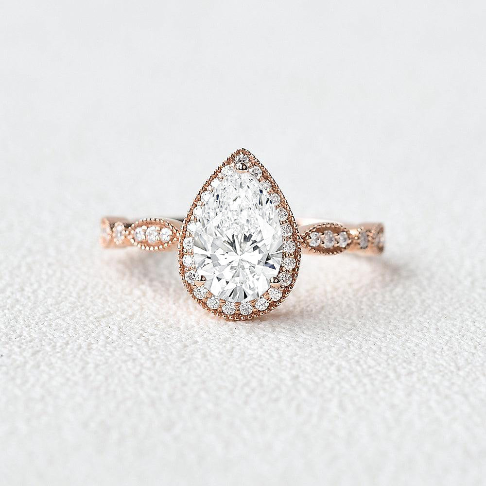 Felicegals 1.5ct Pear Shaped Colorless Lab Grown Diamond Classic Halo Gold Ring Engagement Ring Eternity Gold Wedding Ring Stacking Ring Anniversary Gift