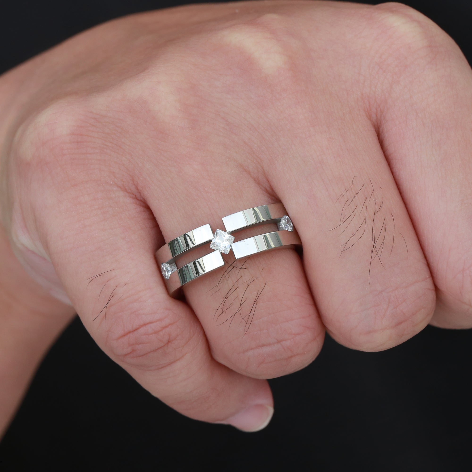 8mm Princess Three Stone Moissanite Couple Men's Wedding Band