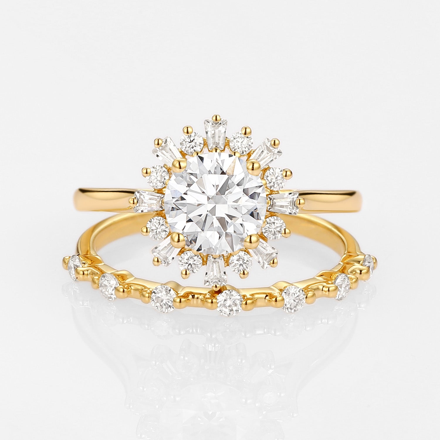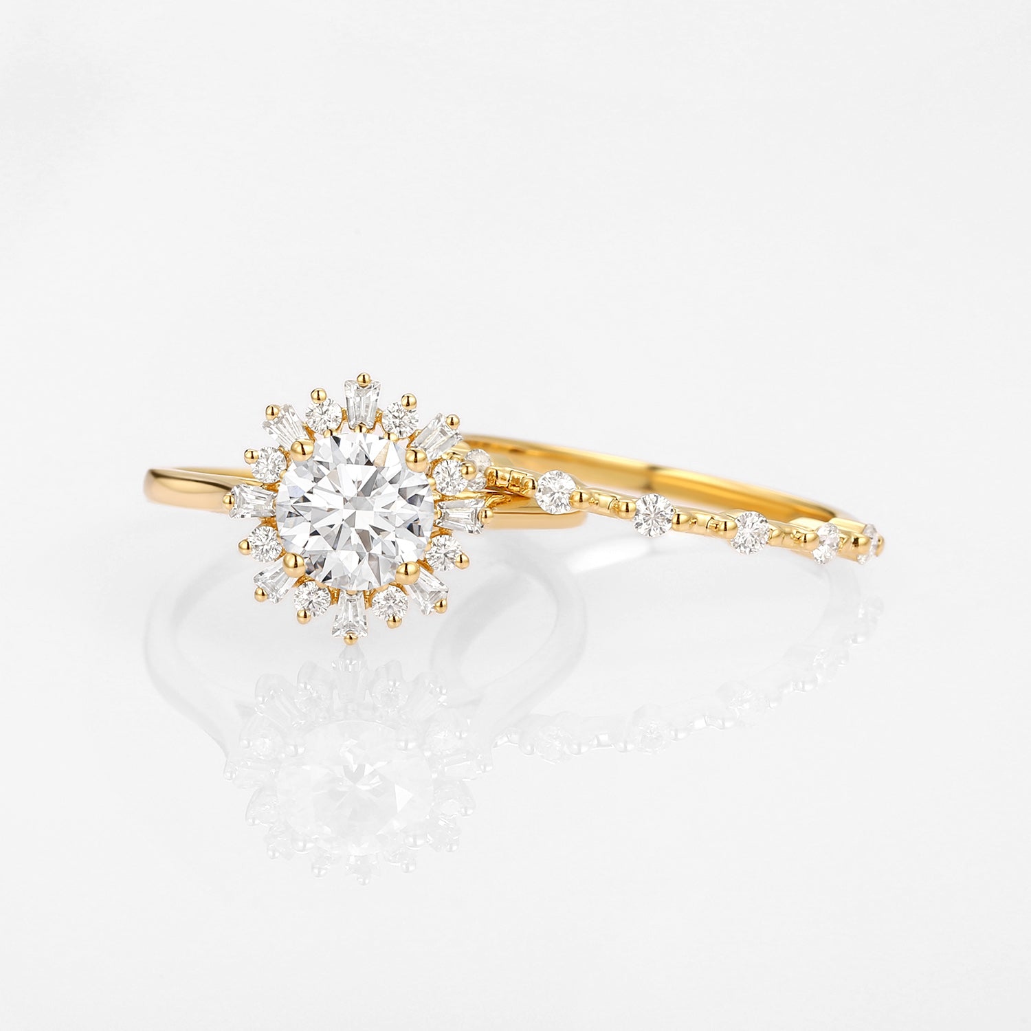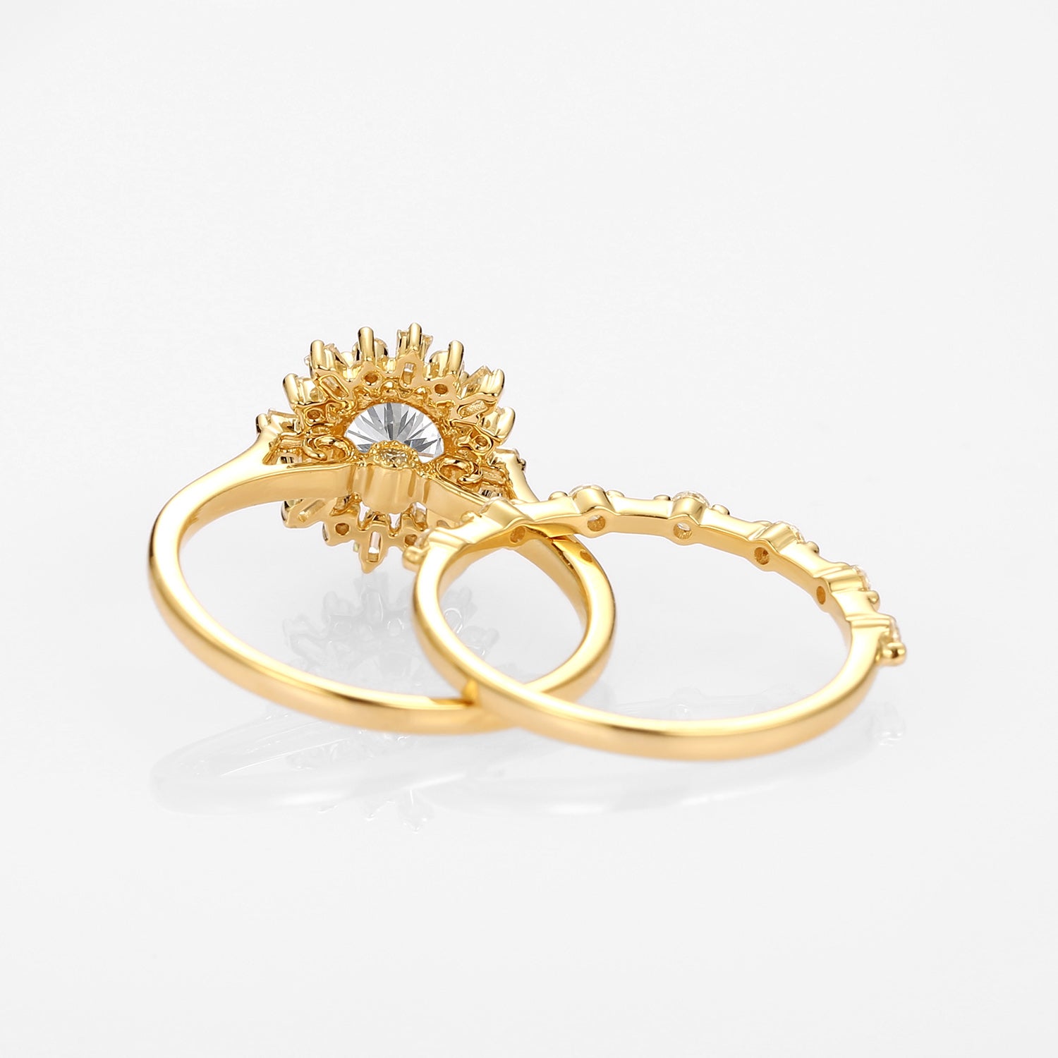 Halo Floral Round Lab Grown Diamond Ring Set 2pcs - Sol