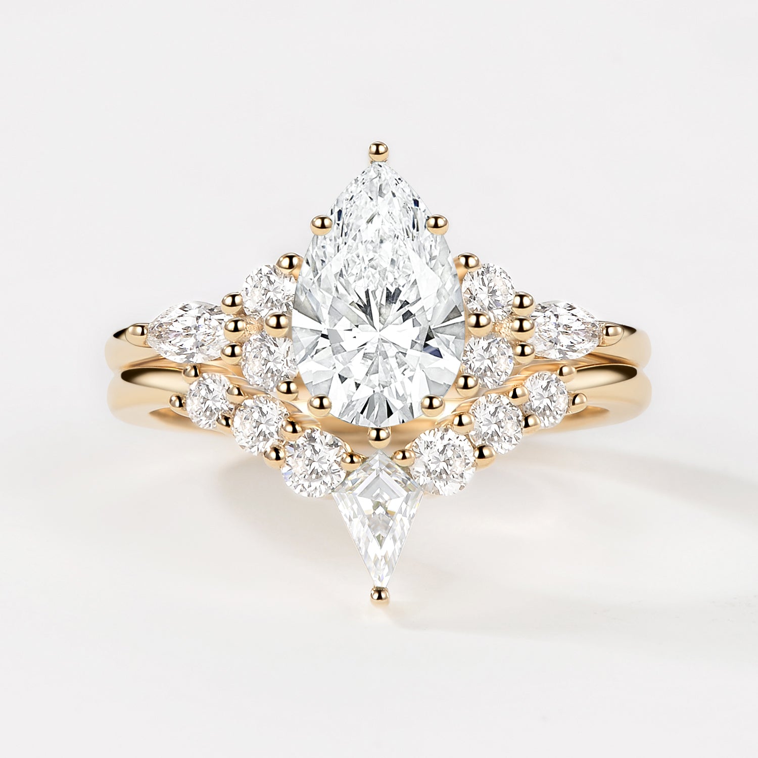 Lab Grown Diamond Pear Cut Curved Engagement Ring Set 2pcs - Zoey