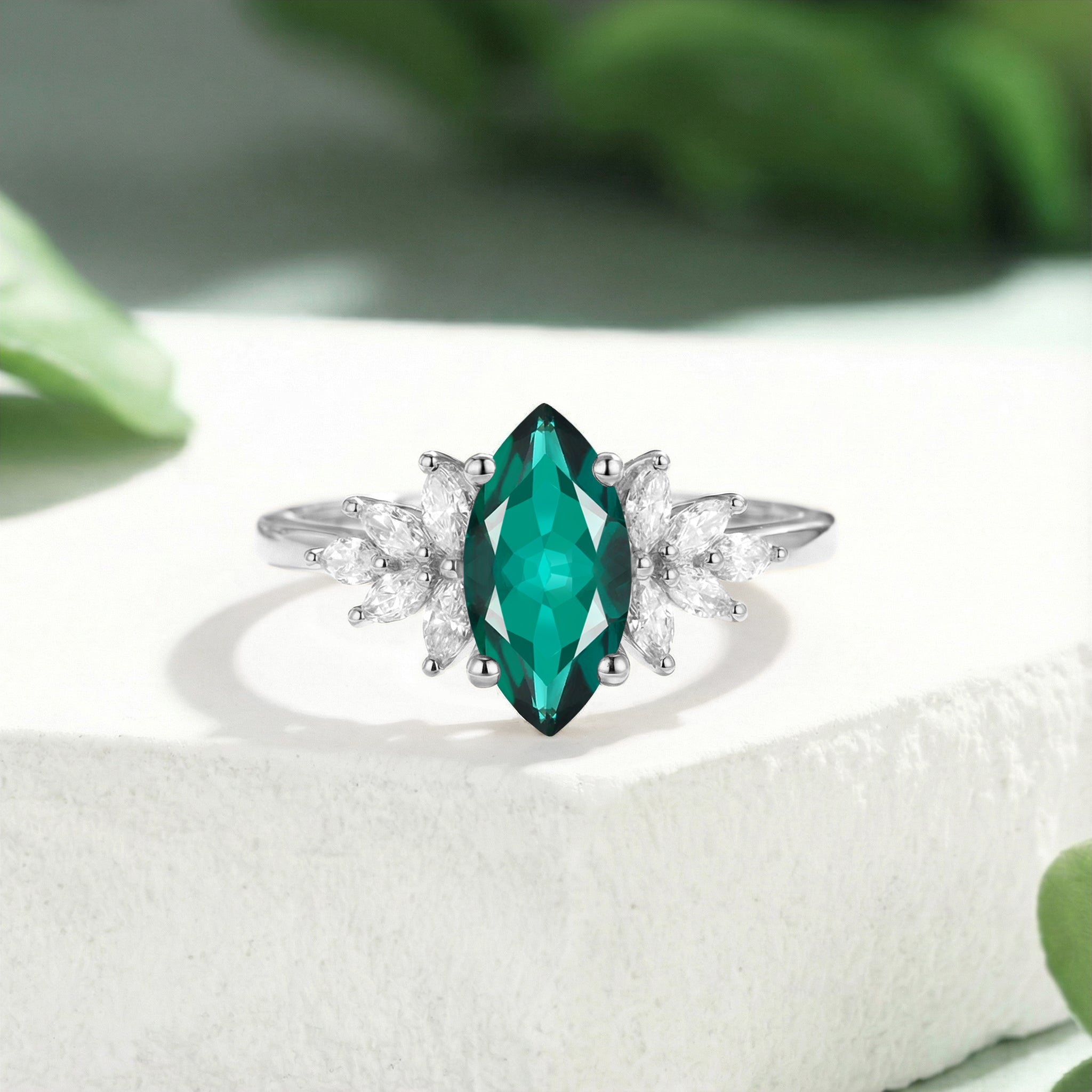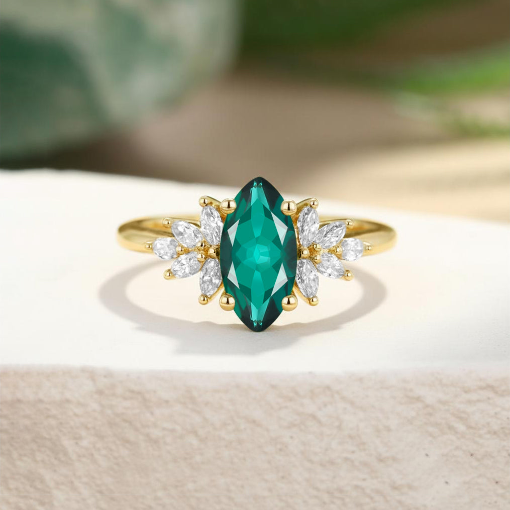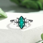 Marquise Cut Lab Emerald Cluster Side Stone Engagement Ring