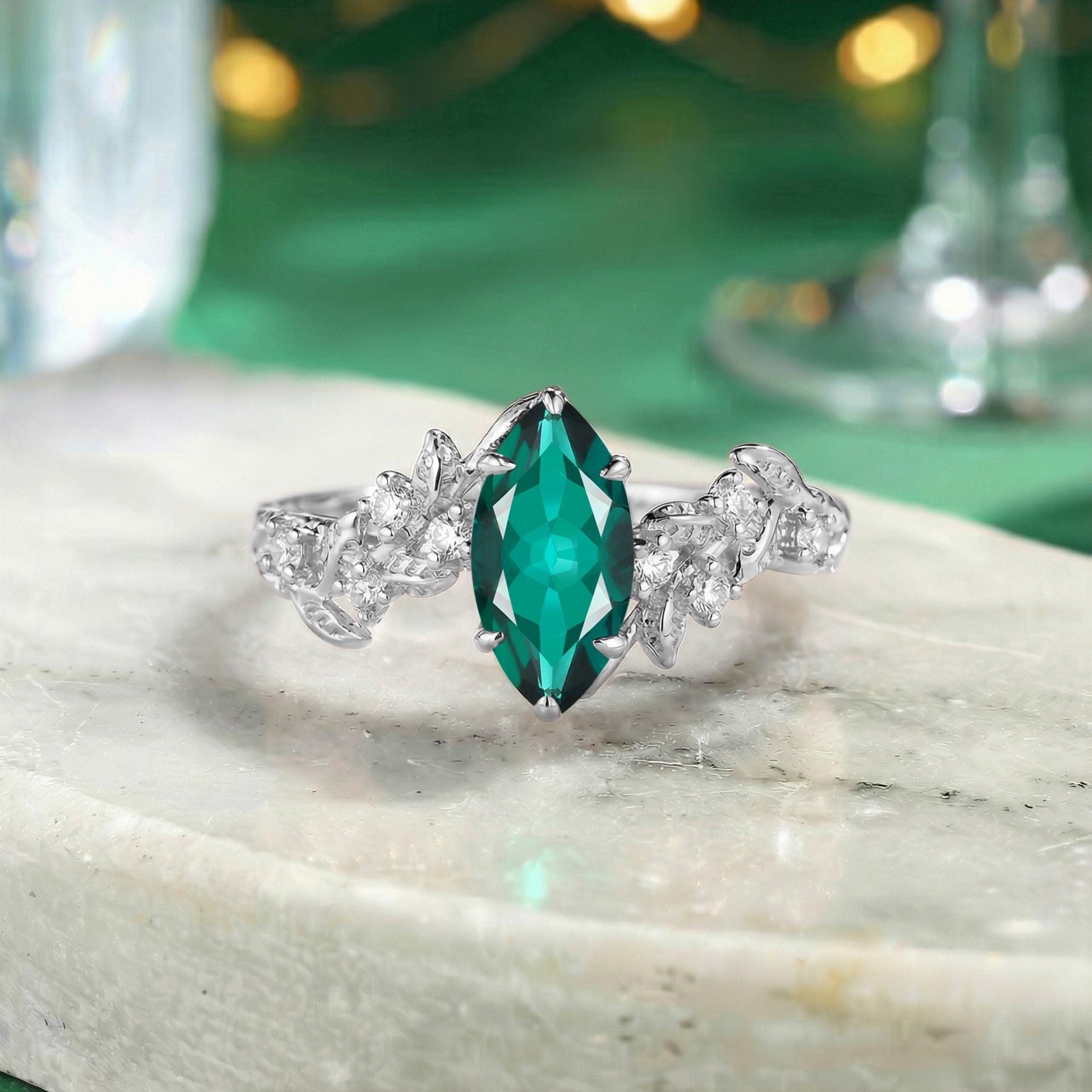 Marquise Cut Lab Emerald Engagement Ring - Agatha