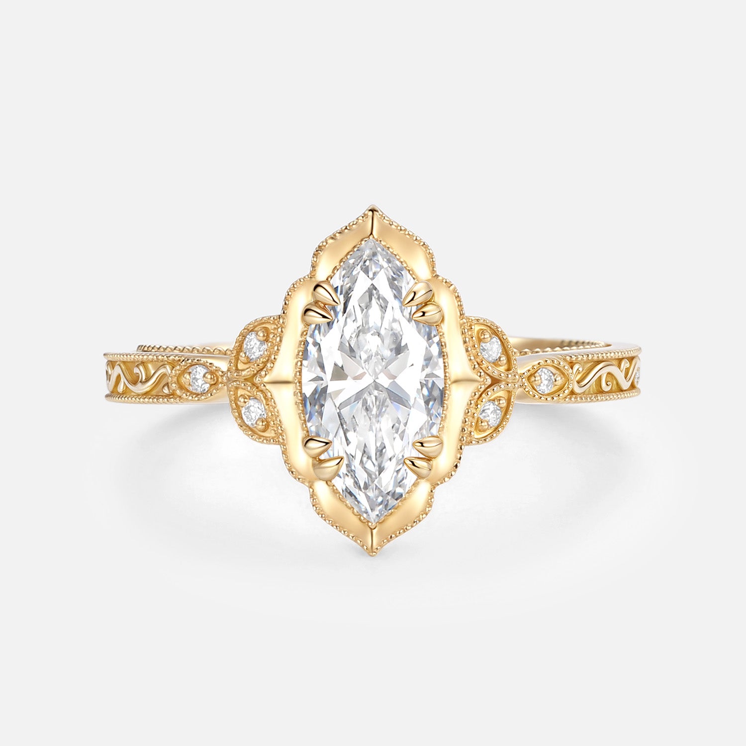 Marquise Cut Lab Grown Diamond Engraved Engagement Ring - Eclat