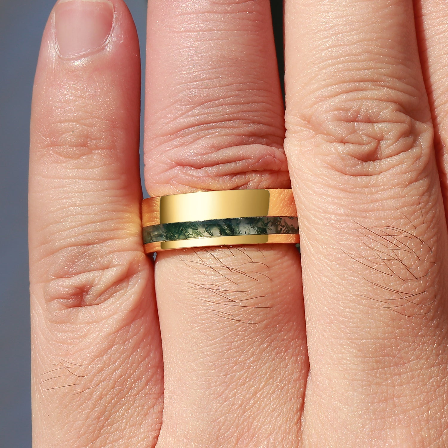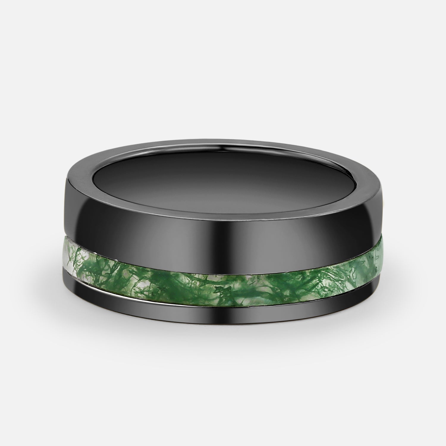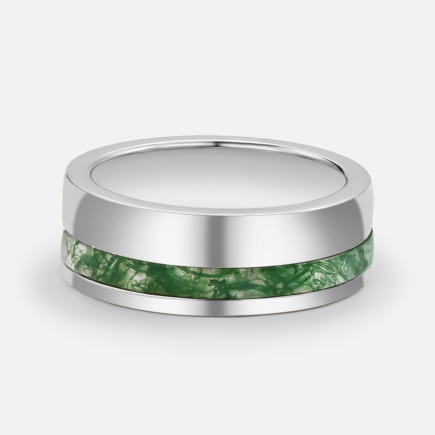 Moss Agate Minimalist Inlay Couple Men's Wedding Band