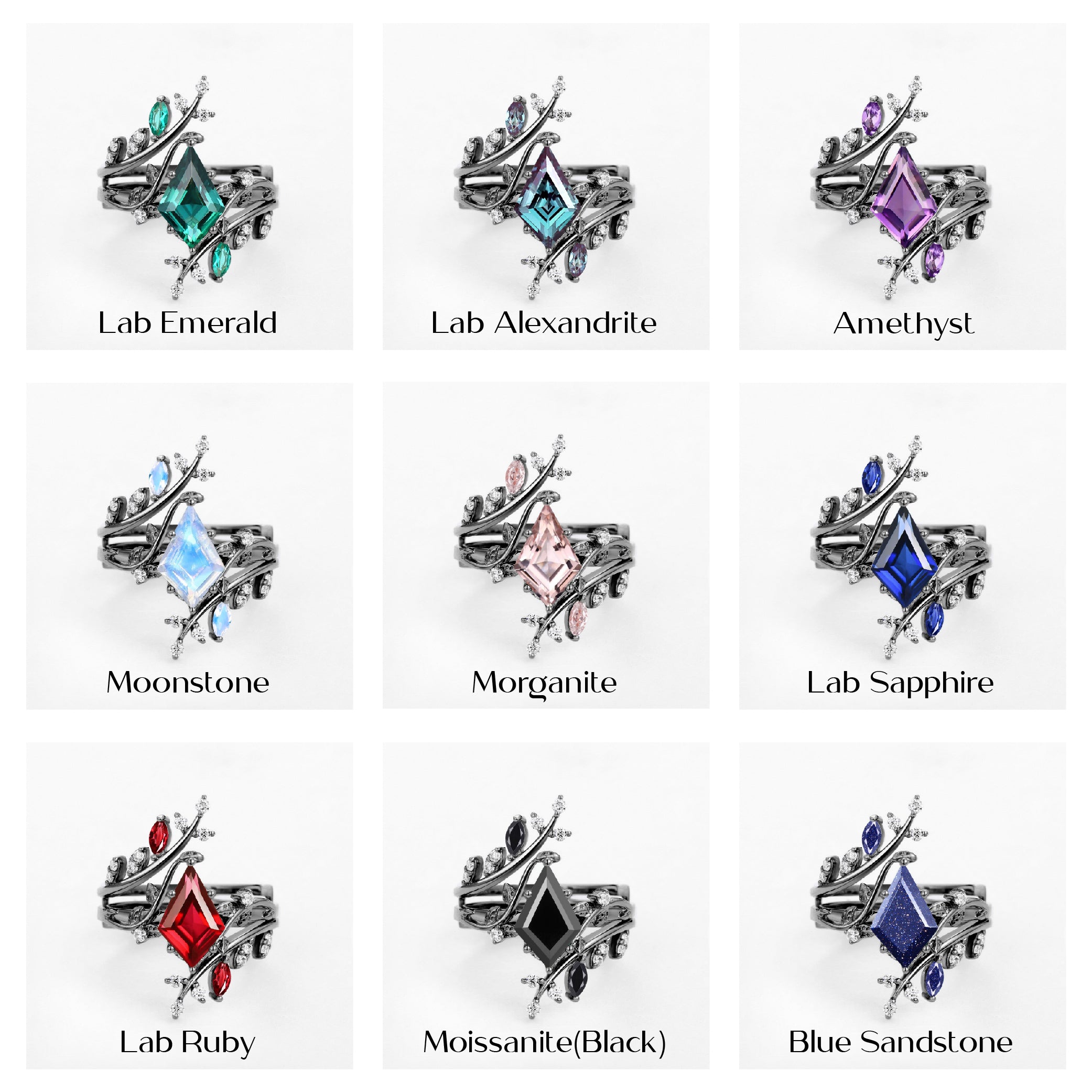 Nature Inspired - Black Gold Kite Cut Moss Agate Cage Ring 2pcs - Knight