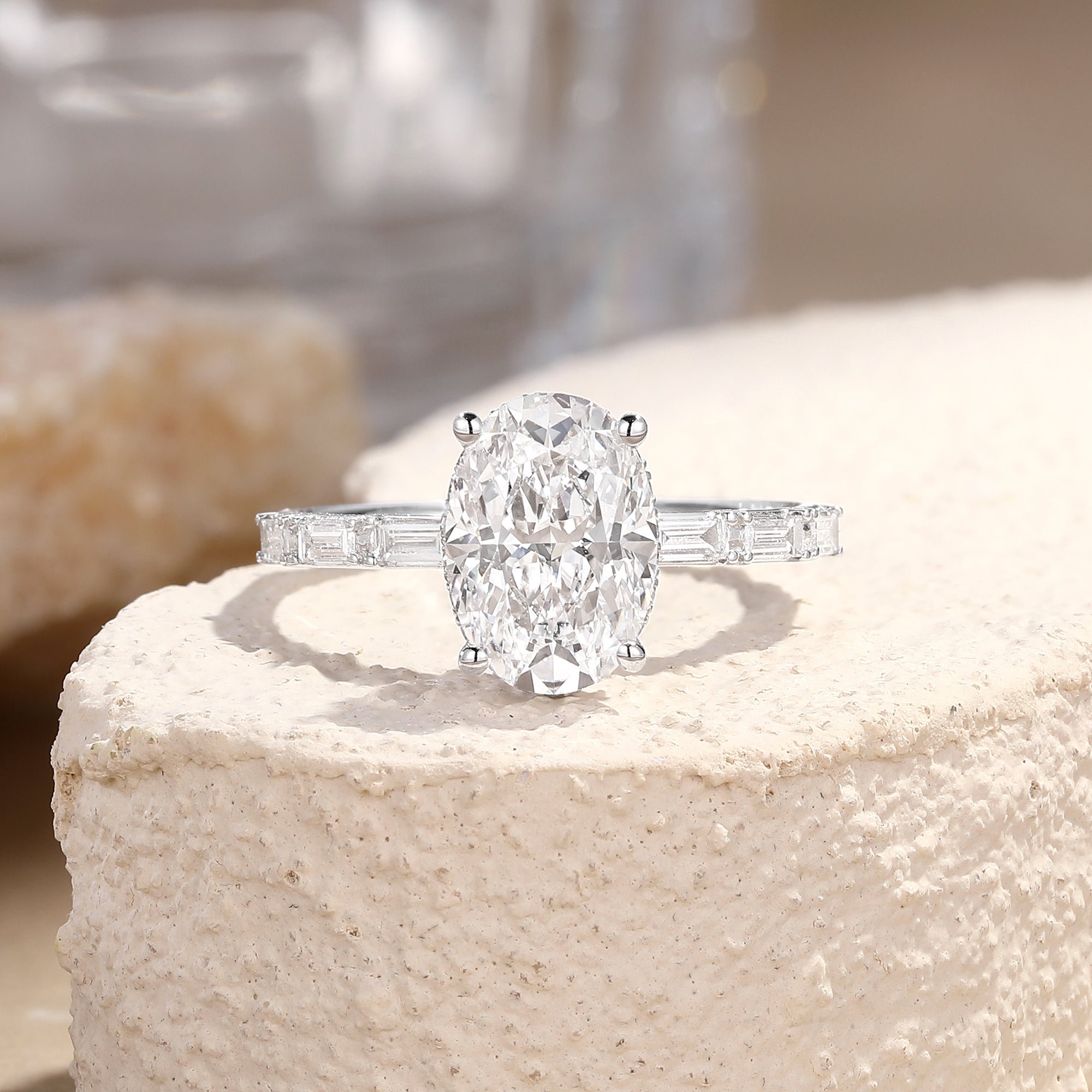 Oval Cut Hidden Halo Baguette Lab Grown Diamond Gold Engagement Ring - Grace