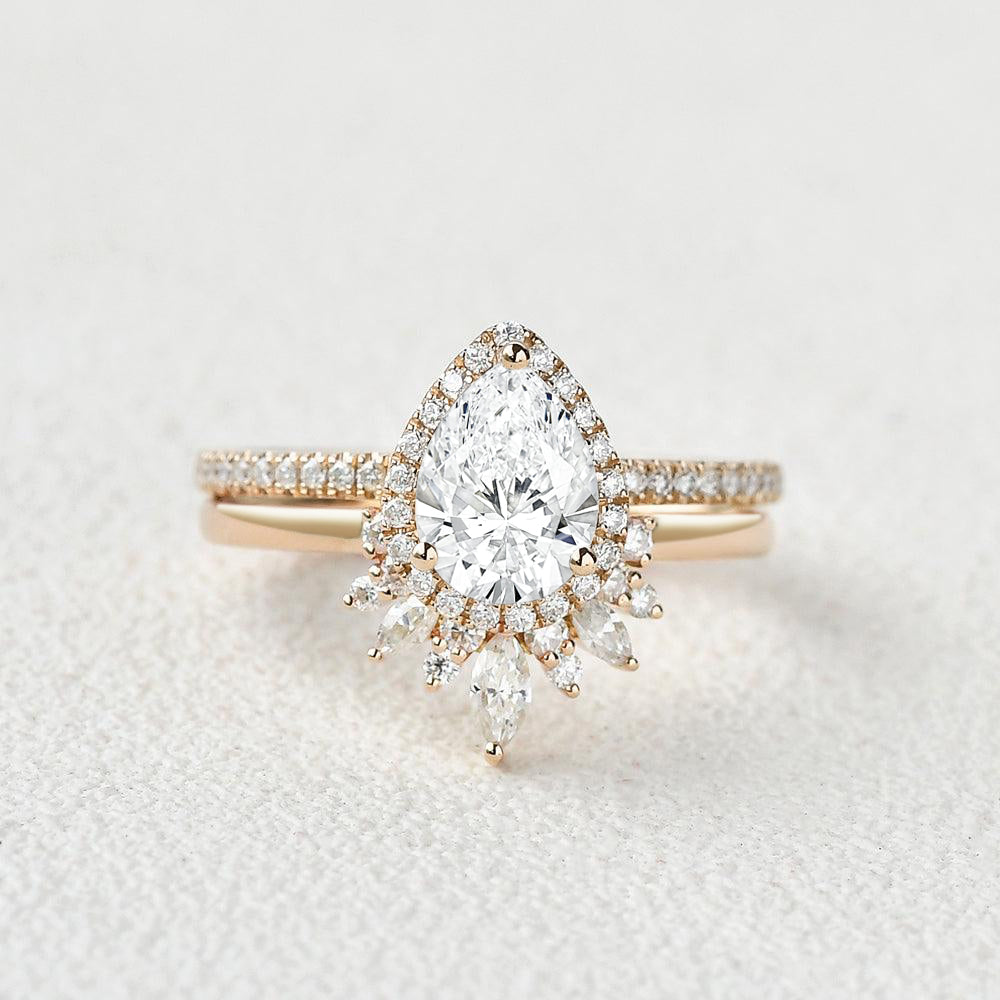 Pear Cut Lab Grown Diamond Halo Ring Set 2pcs