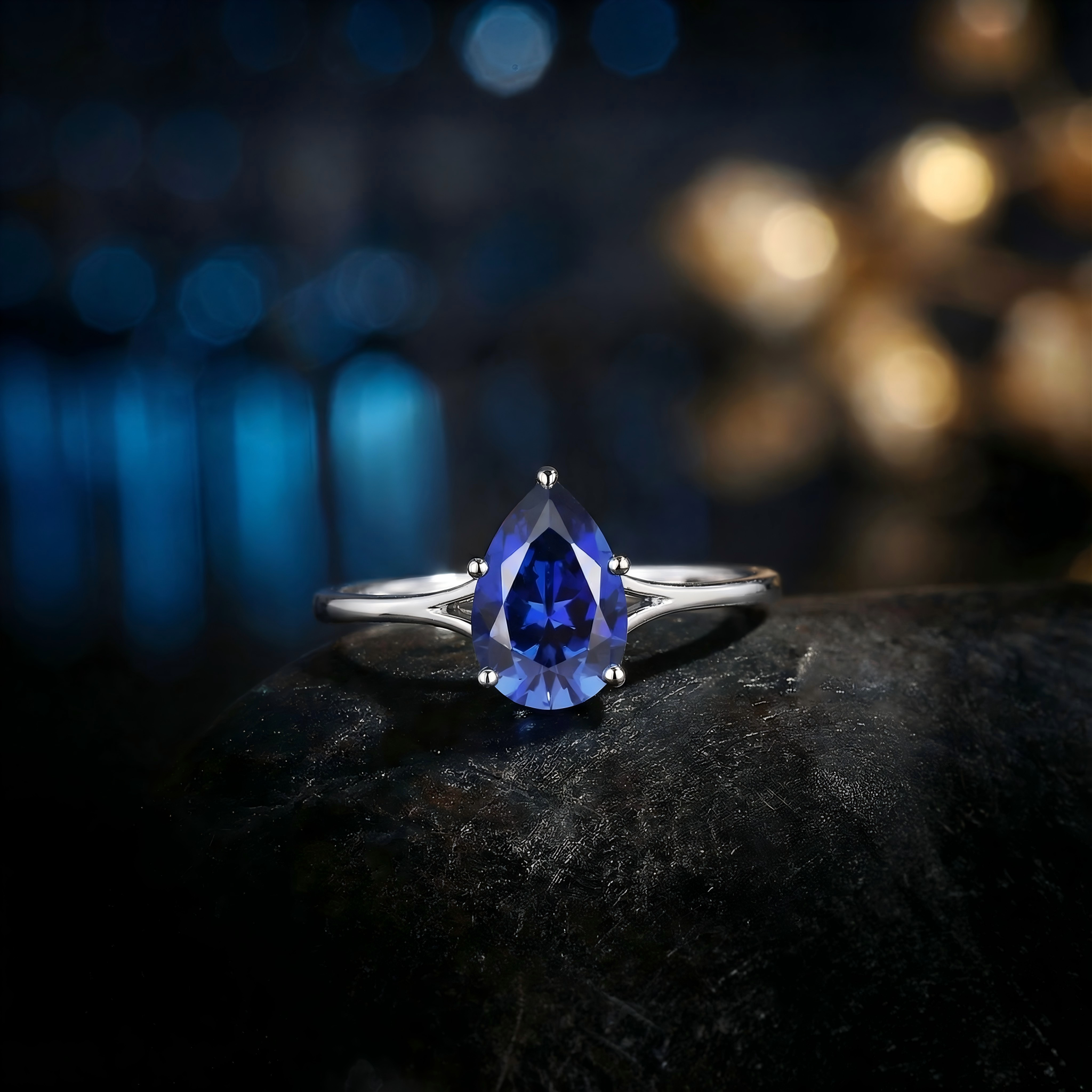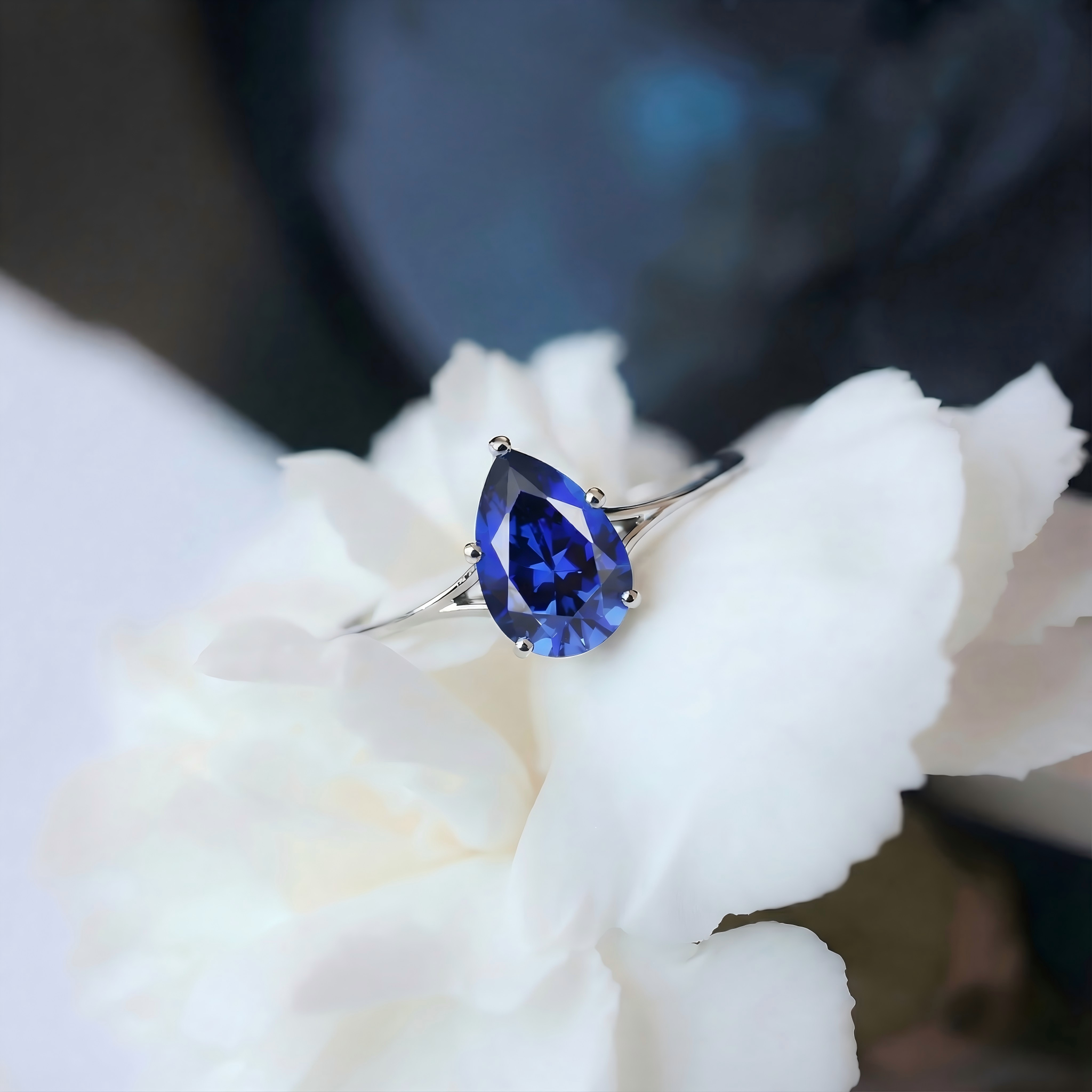 Pear Cut Lab Sapphire Engagement Ring - Lior