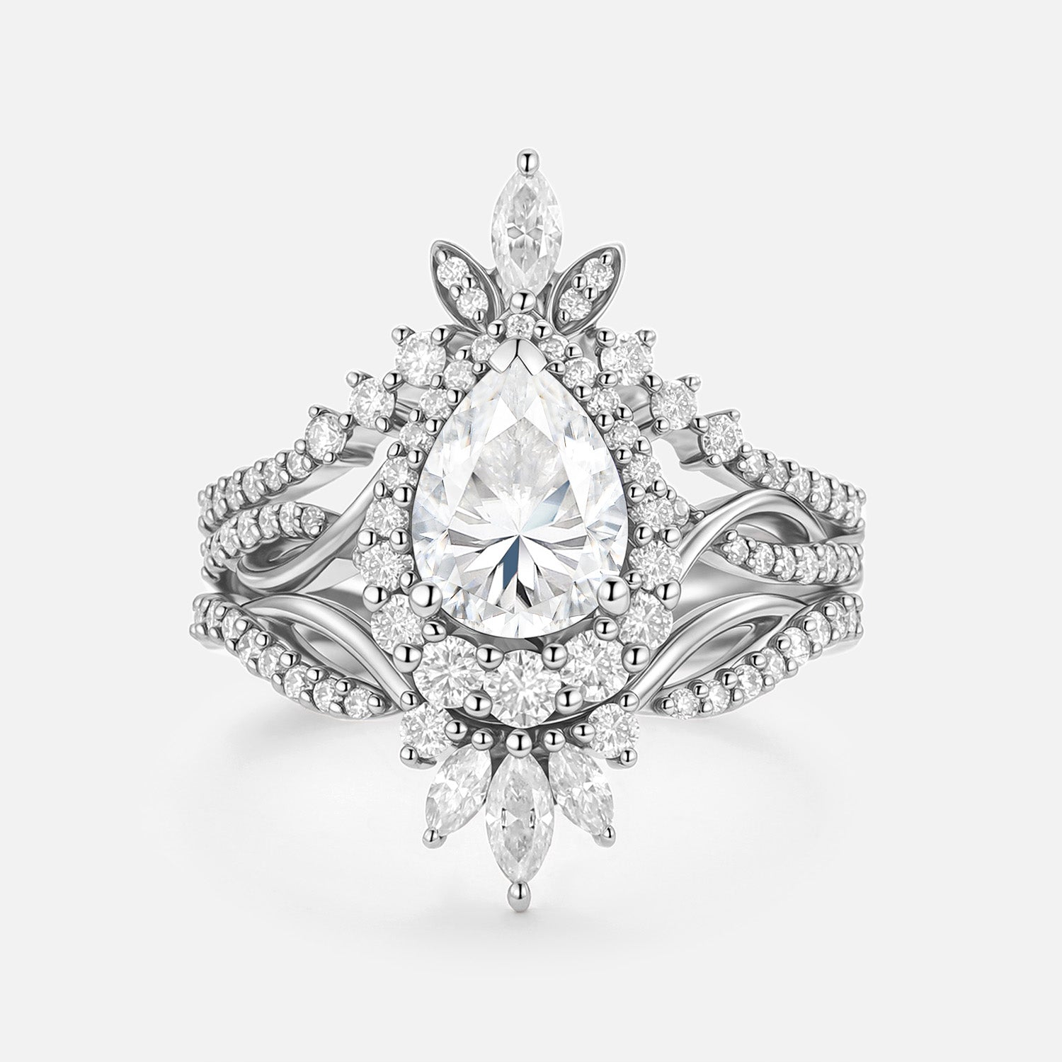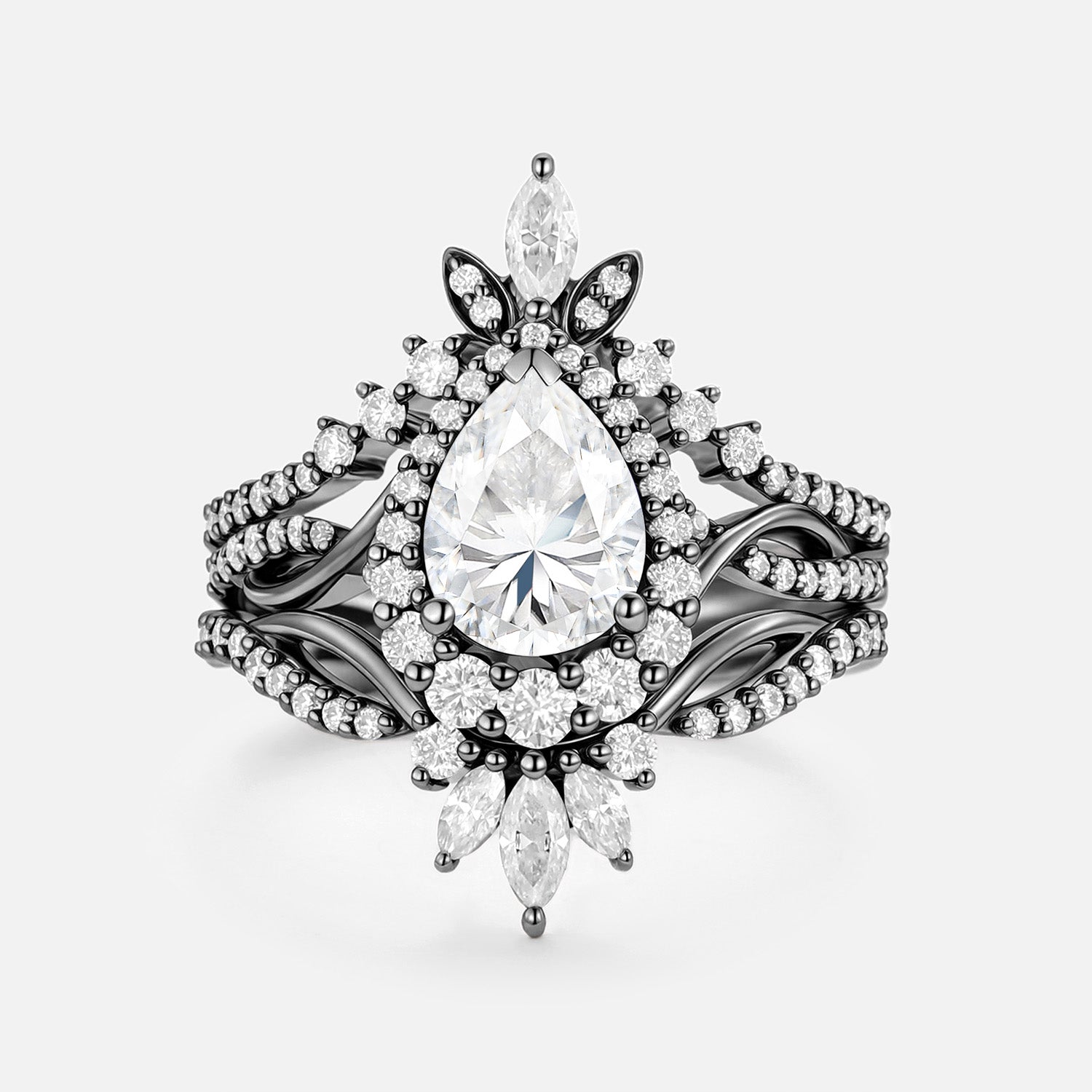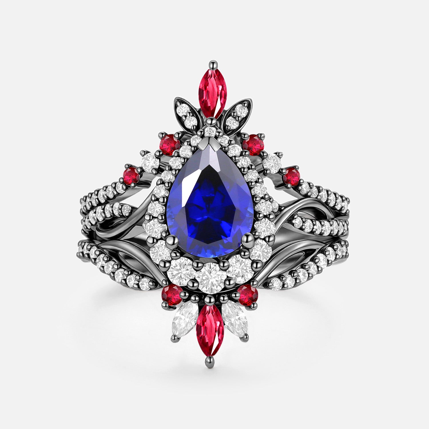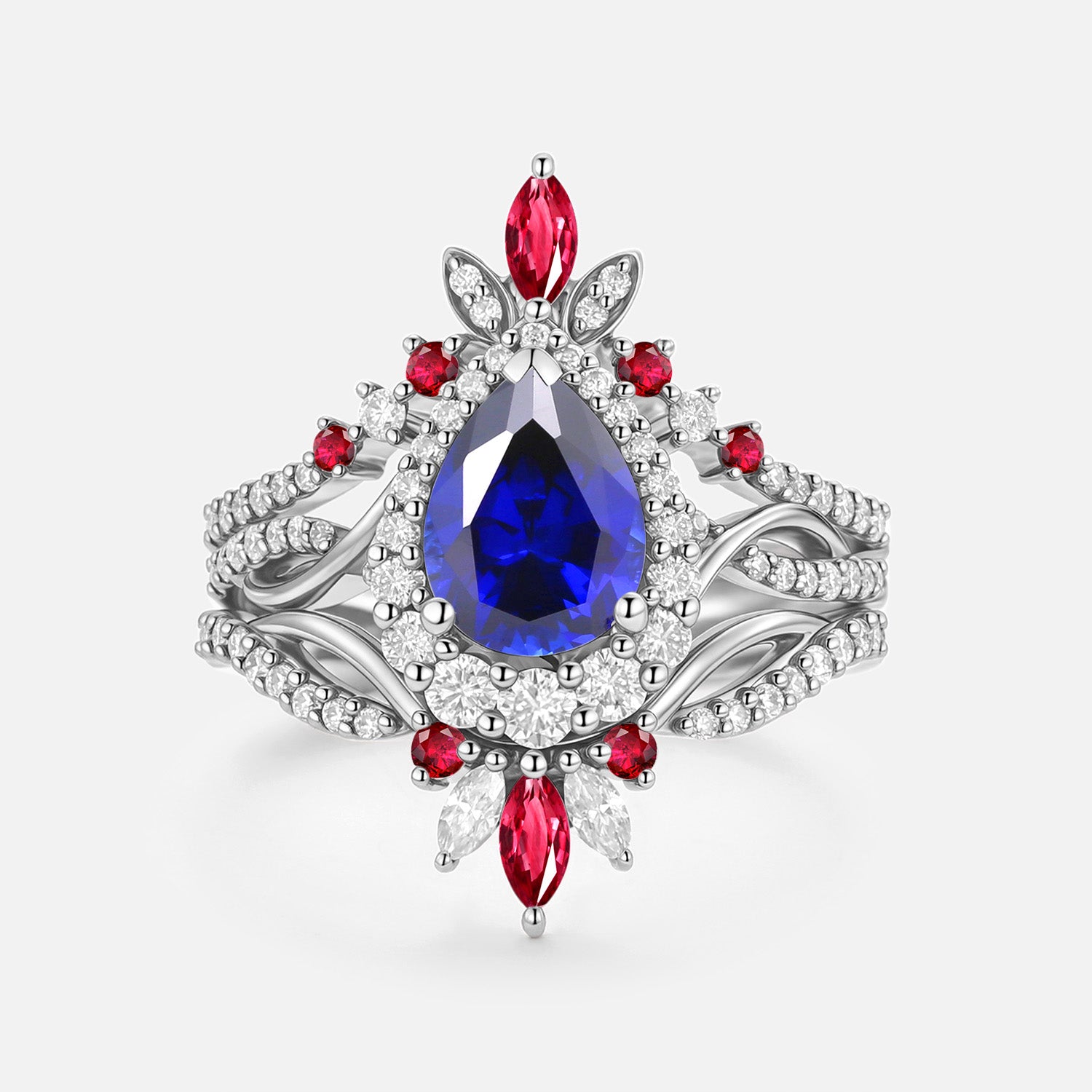 Pear Cut Lab Sapphire&Lab Ruby Signature Vintage Ring Set 3pcs