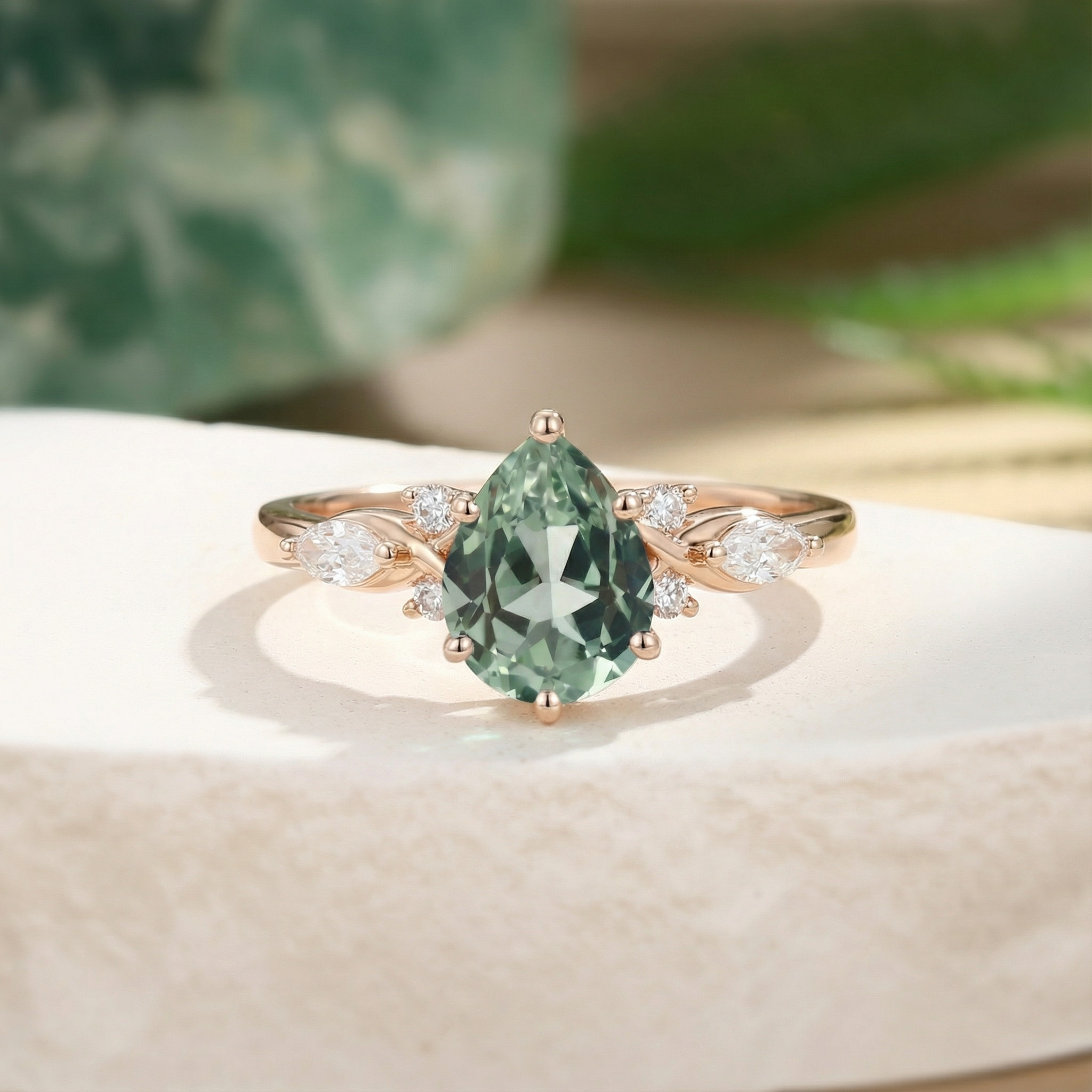Pear Twist Infinity Lab Green Sapphire Engagement Ring - Vortex