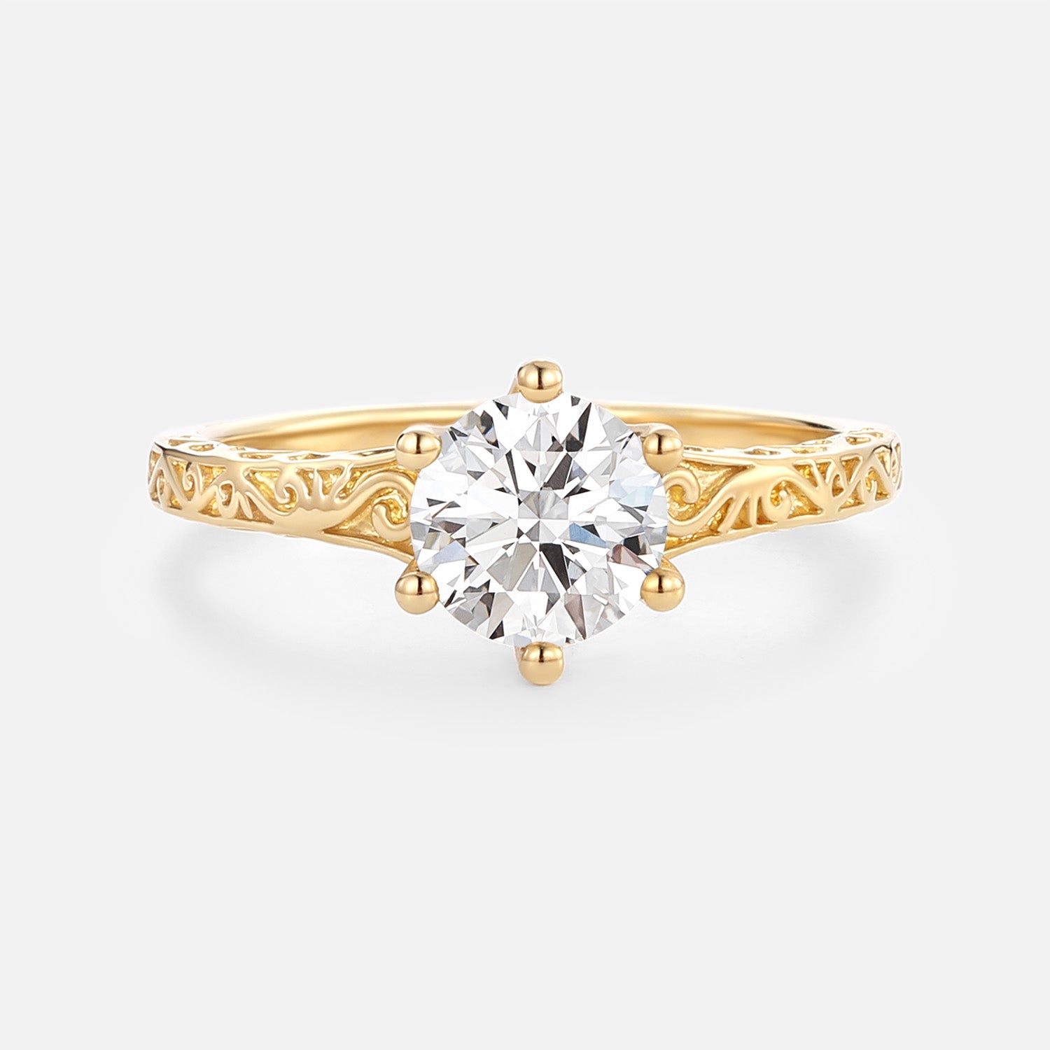 Round Engraved Solitaire Lab Grown Diamond Engagement Ring - Aureate