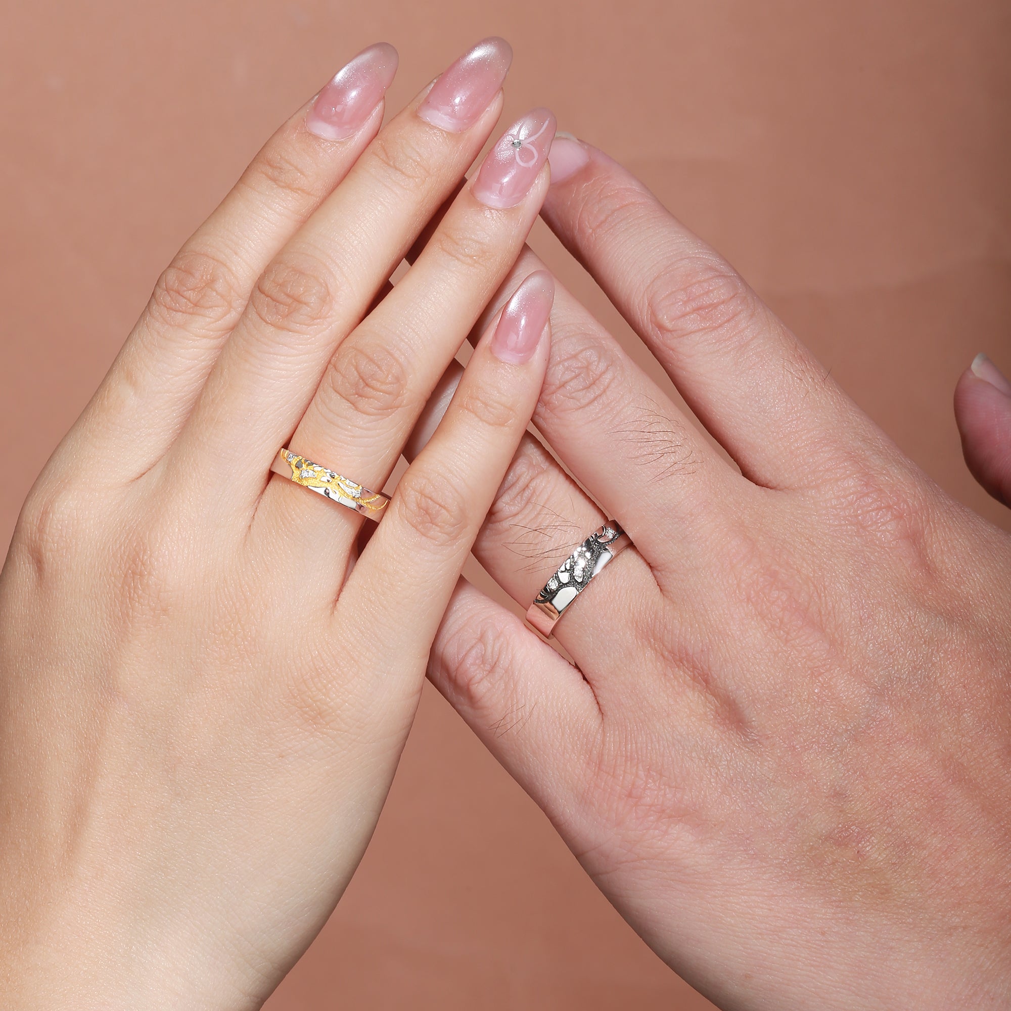 Symbiotic Tree Inspired Engraved Moissanite Couple Ring Set 2pcs - Spark