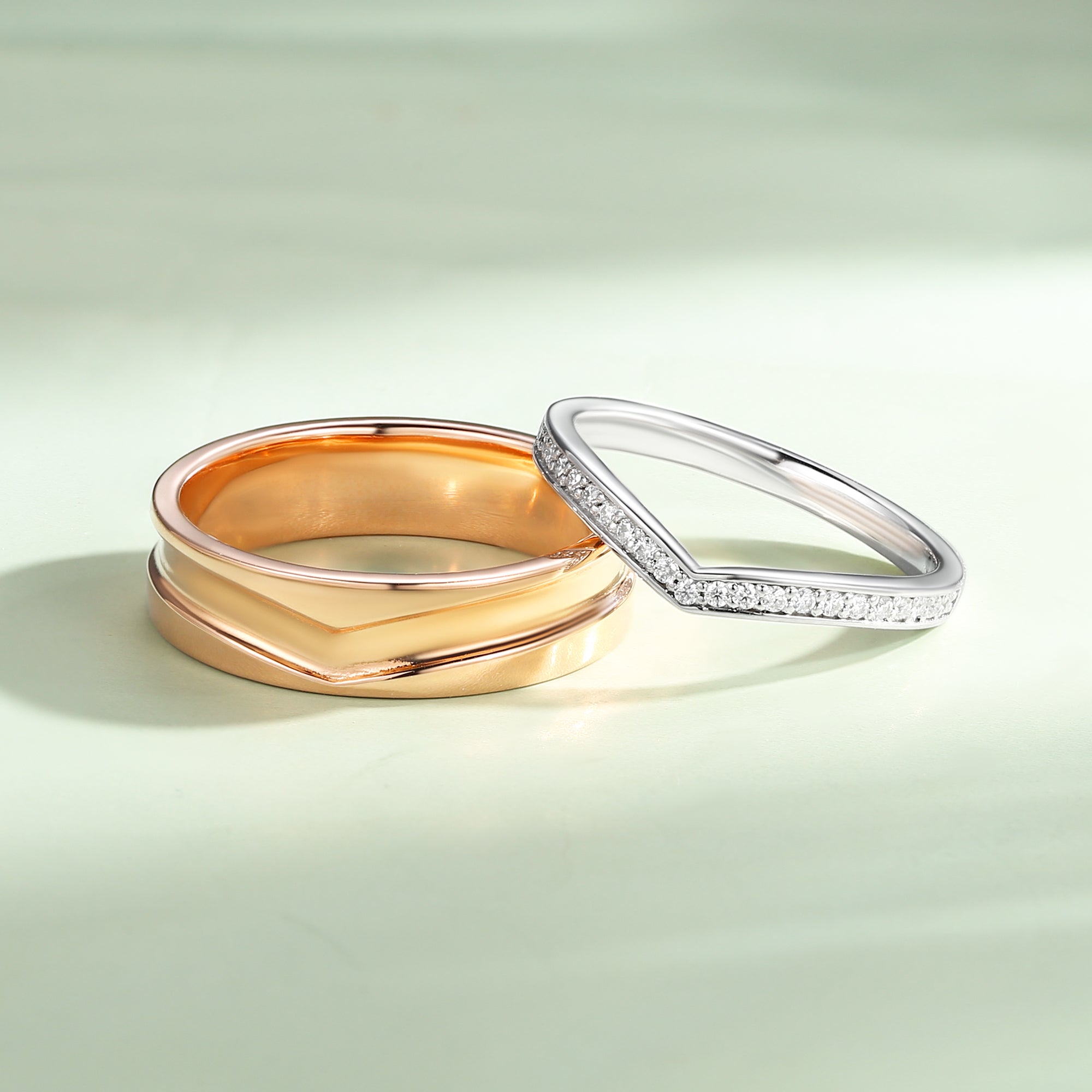 Two-tone Minimalism Moissanite Couple Ring Set 2pcs - Blend