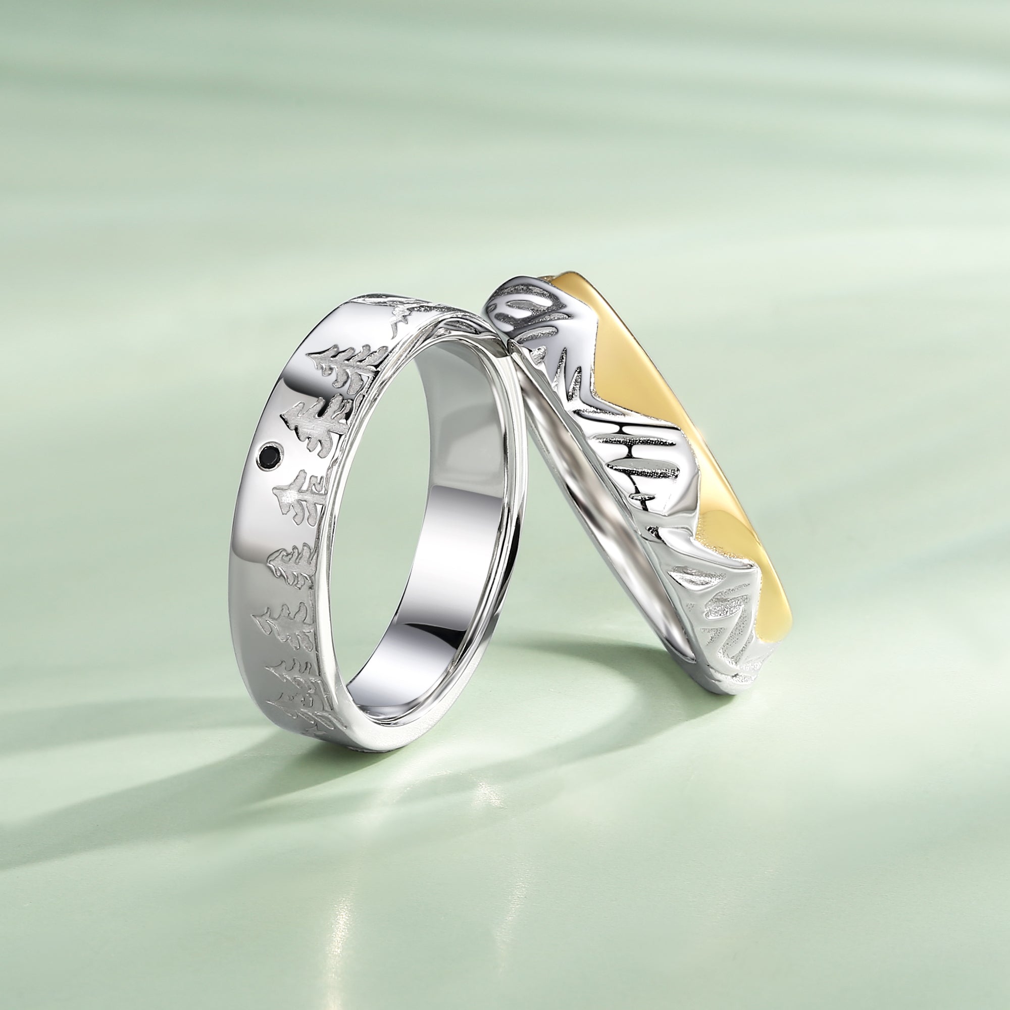 Two-tone Mountain Engraved Couple Ring Set 2pcs - Sylvan