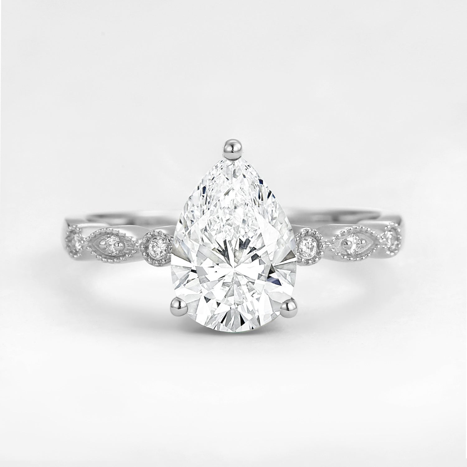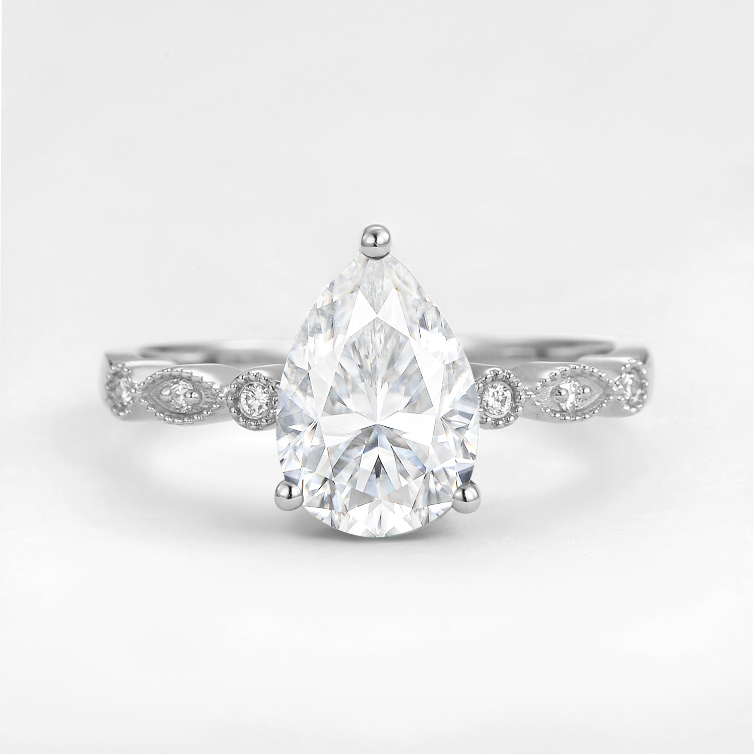 Unique Inspired Pear Shaped Moissanite Engagement Ring