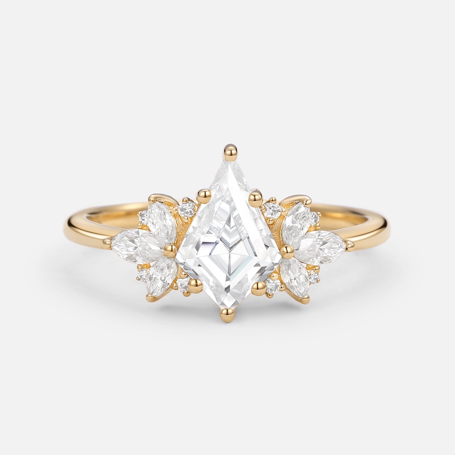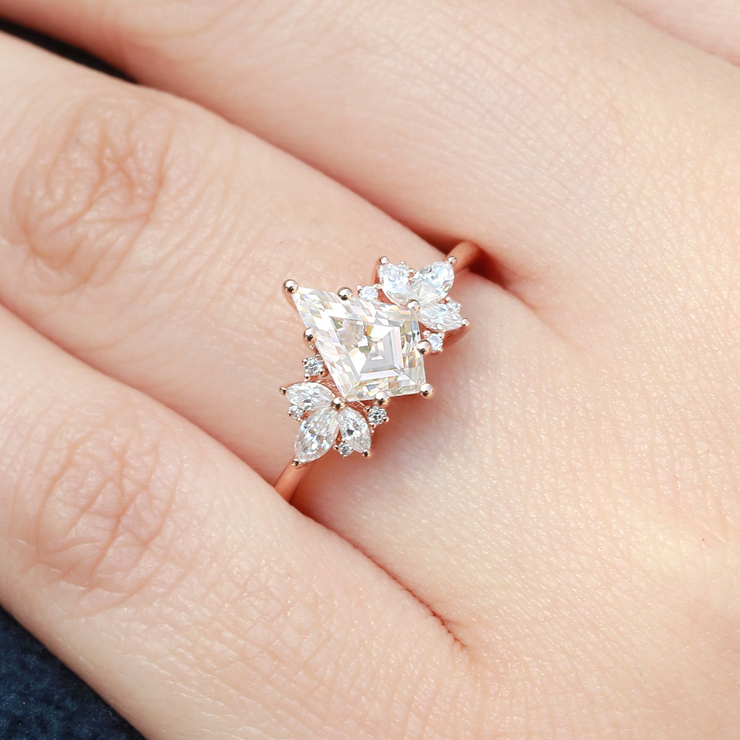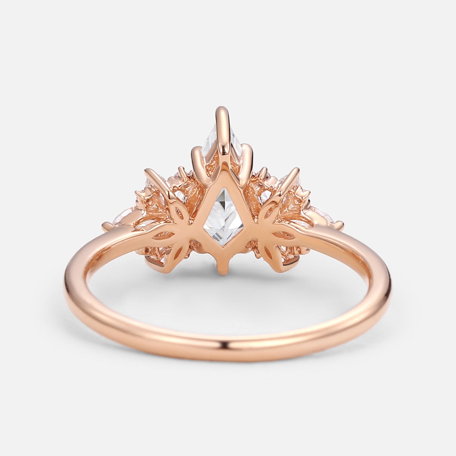 Unique Kite Cut Moissanite Butterfly Cluster Engagement Ring