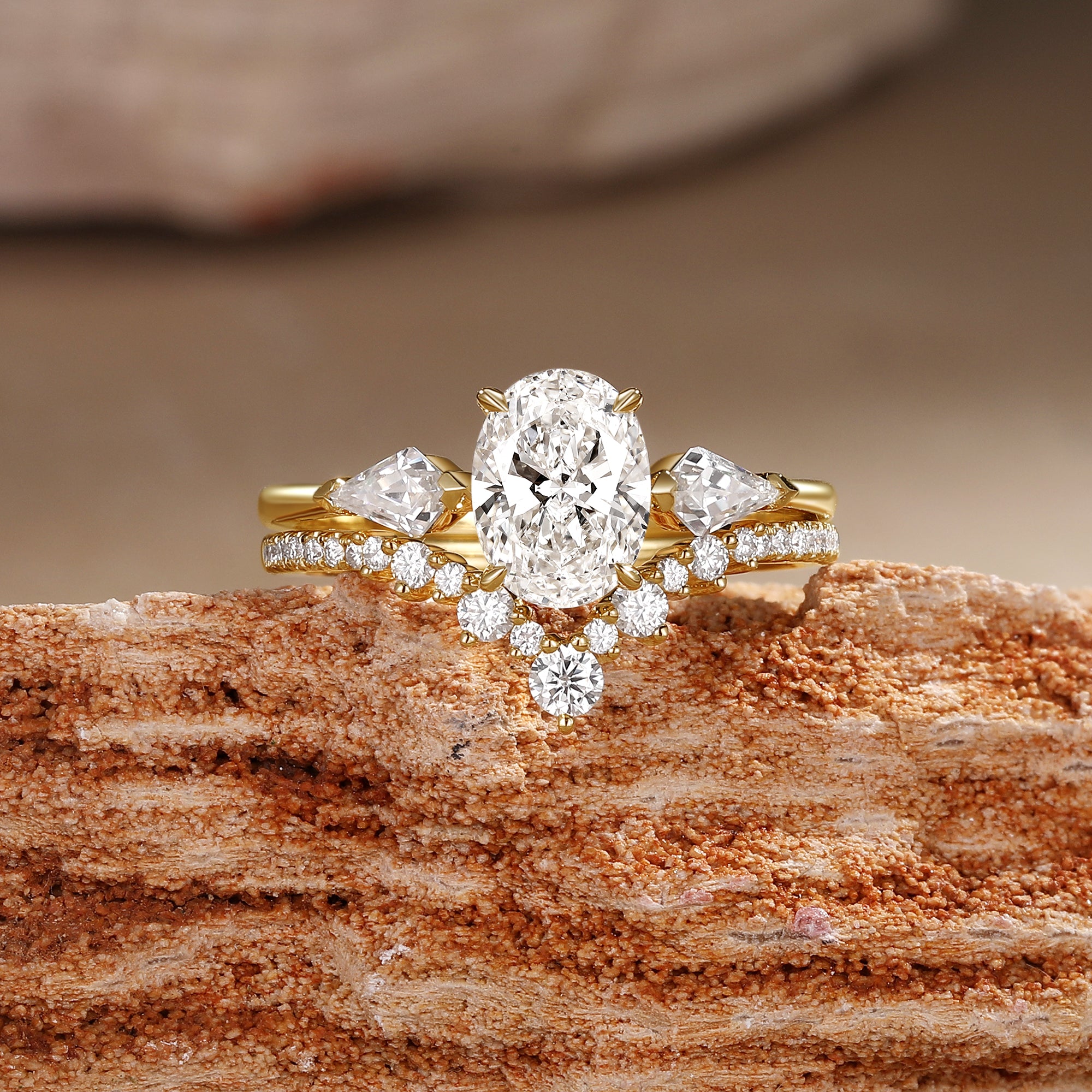 1.0-2.0 Oval Cut Lab Grown Diamond Three Stone Ring Set 2pcs