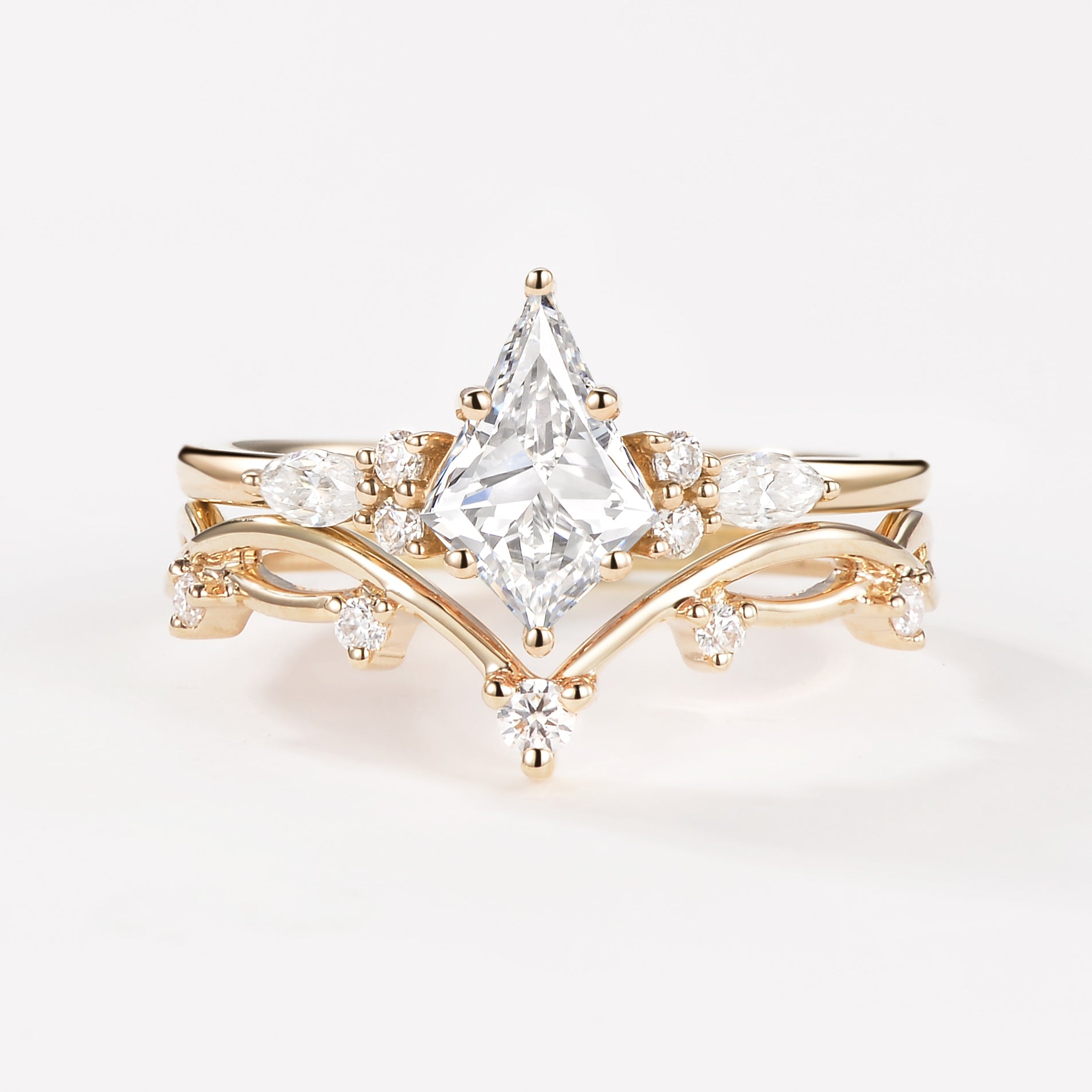 1.0ct Kite Lab Grown Diamond Cluster Engagement Ring Sets 2pcs