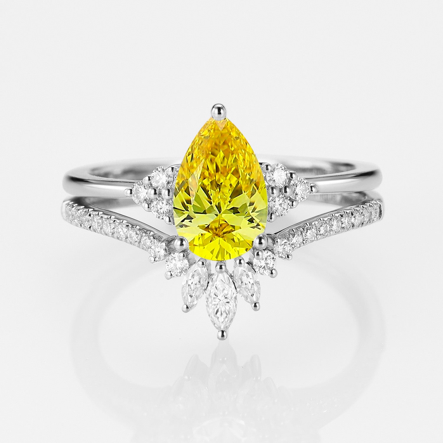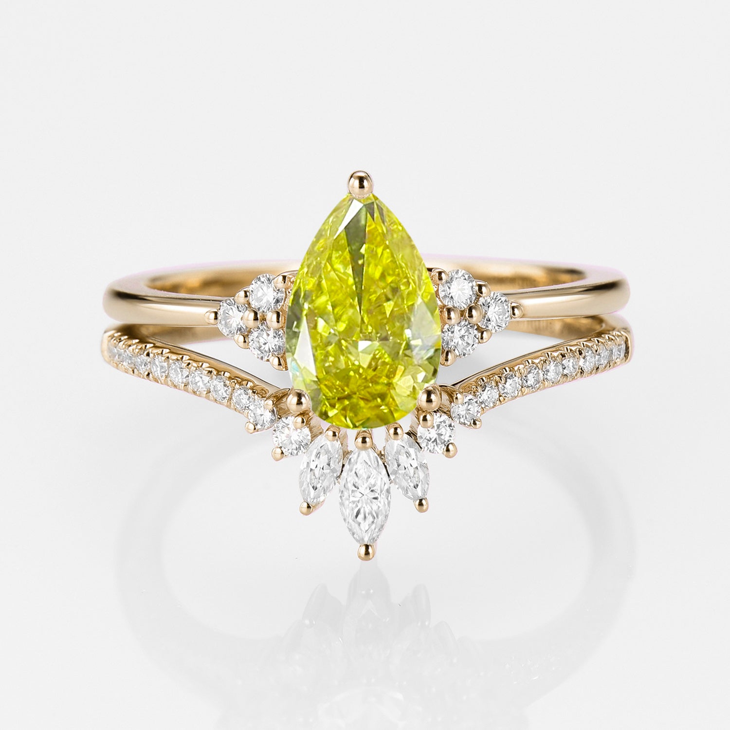 1.0ct Pear Yellow Lab Grown Diamond Vintage Ring Set 2pcs - Lydia