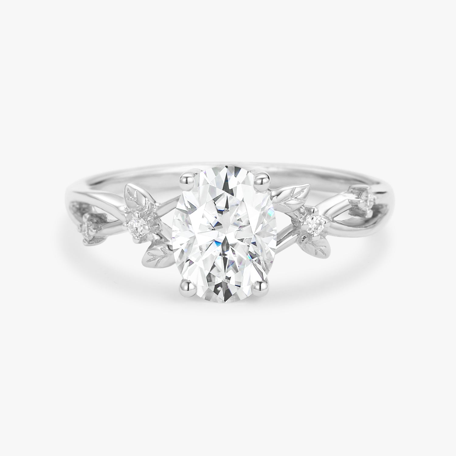 1.5ct Oval Cut Moissanite Leafy White Gold Ring