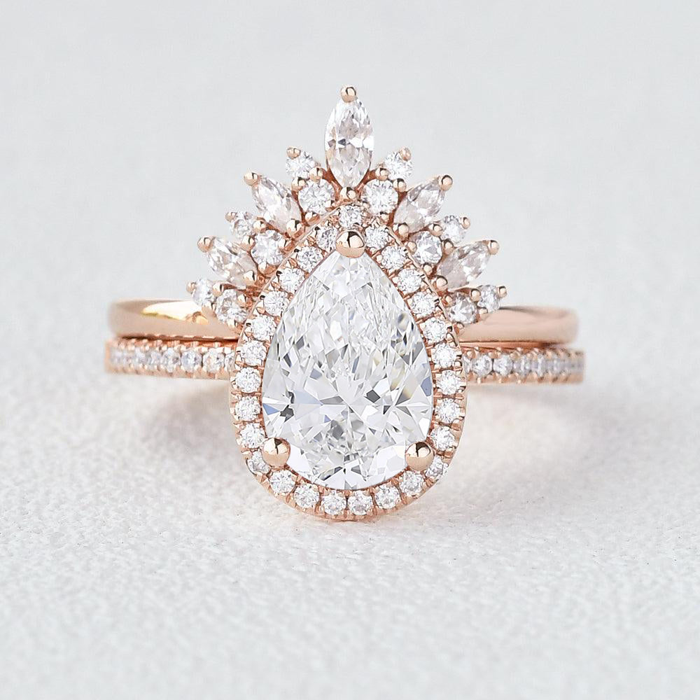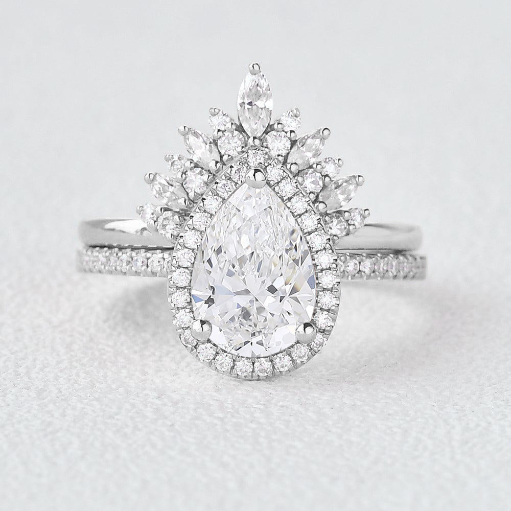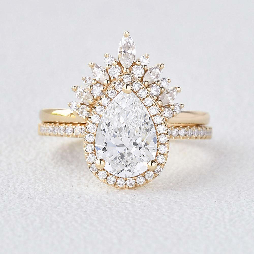 2.0 Classic Pear Cut Lab Grown Diamond Halo Ring Set 2pcs