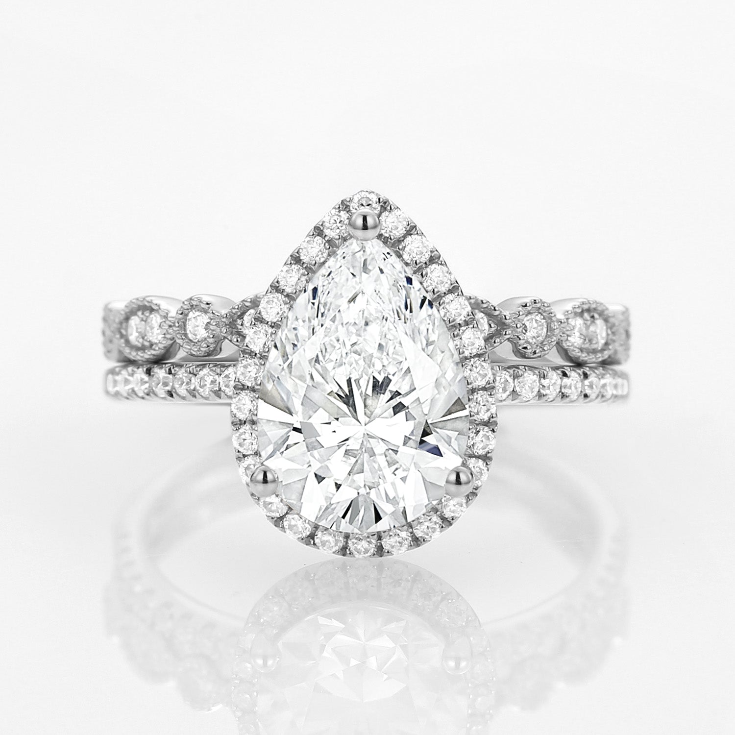 2.0ct Vintage Halo Pear Lab Grown Diamond Ring Set 2pcs