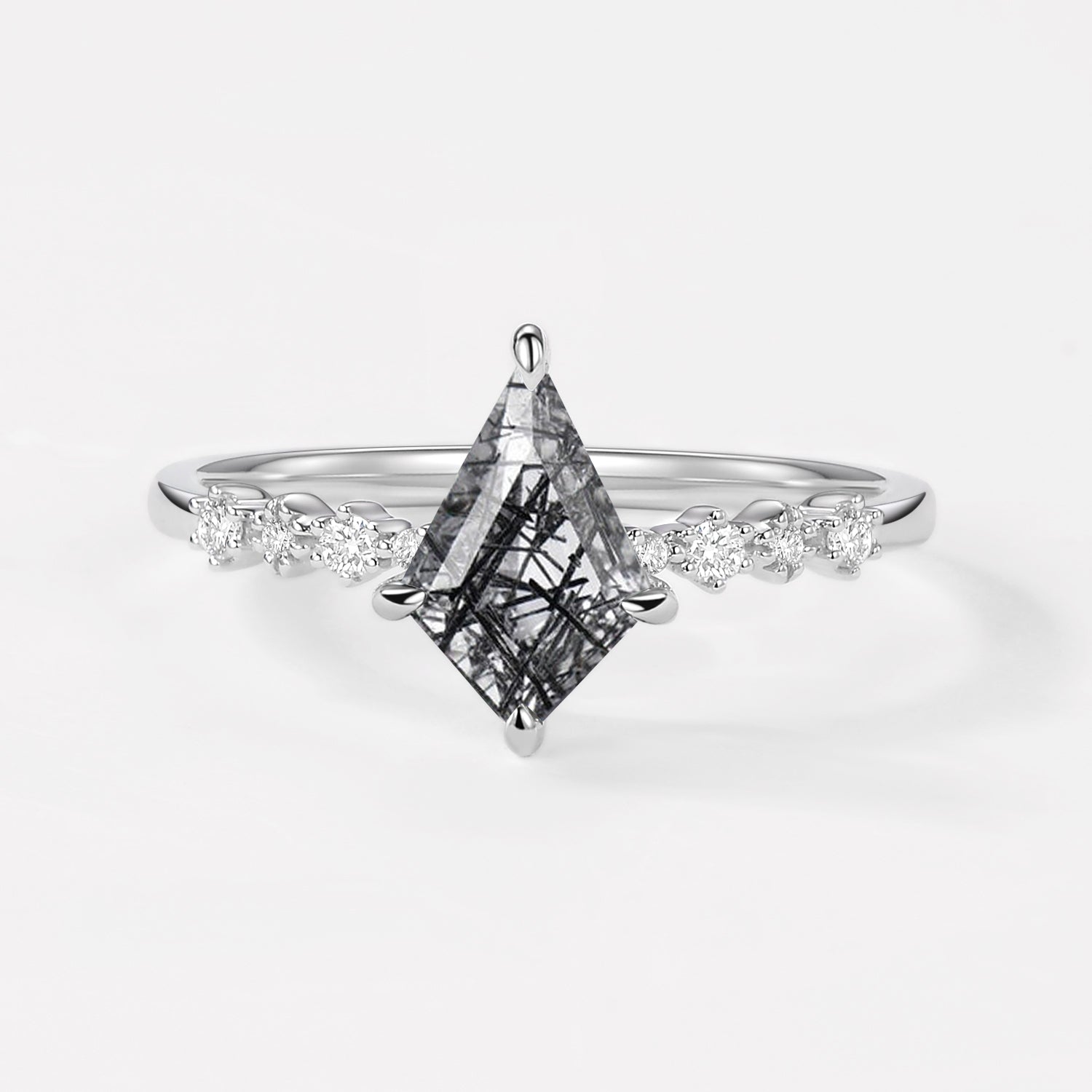 Kit Cut Black Rutilated Quartz Four-Prong Engagement Ring