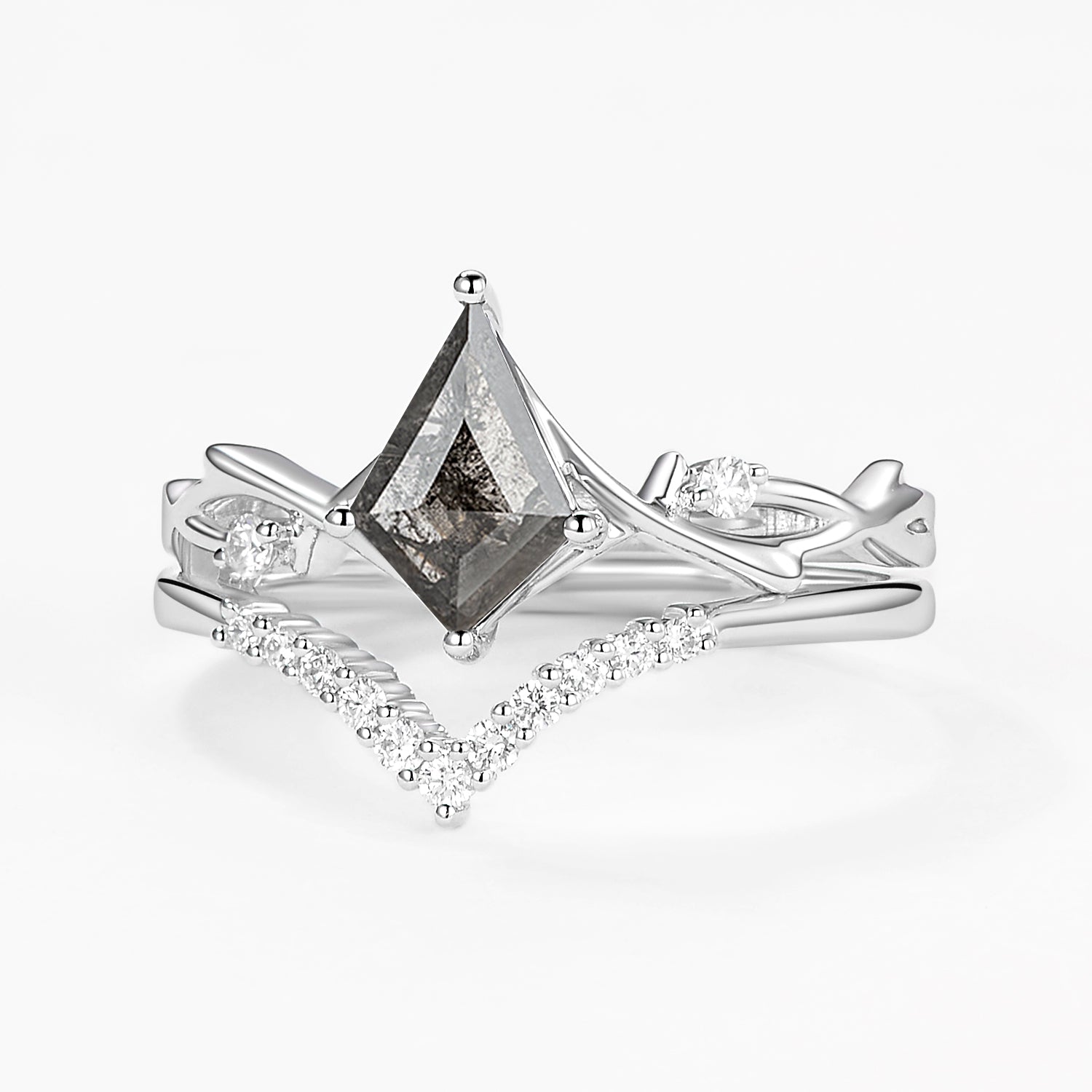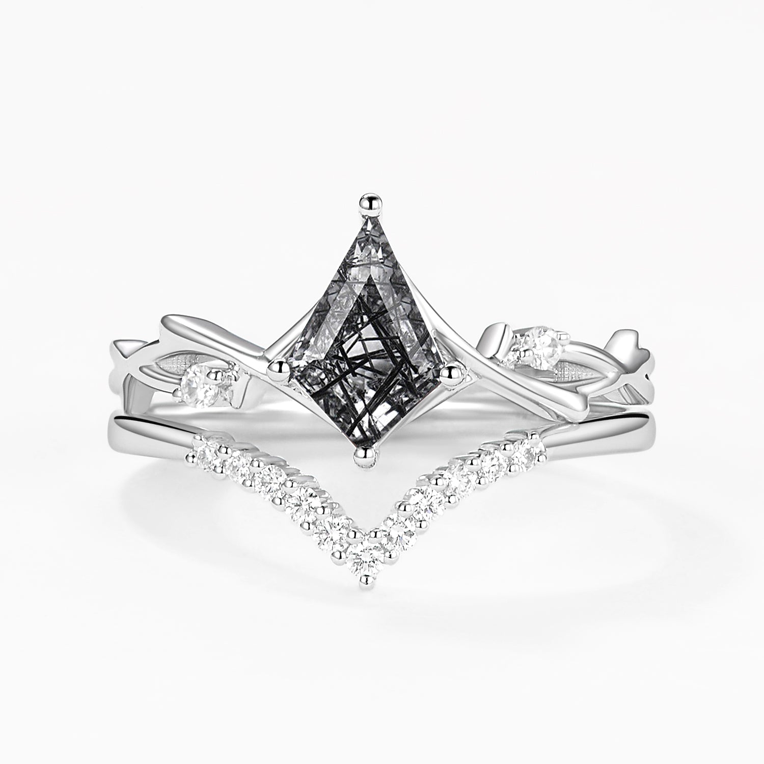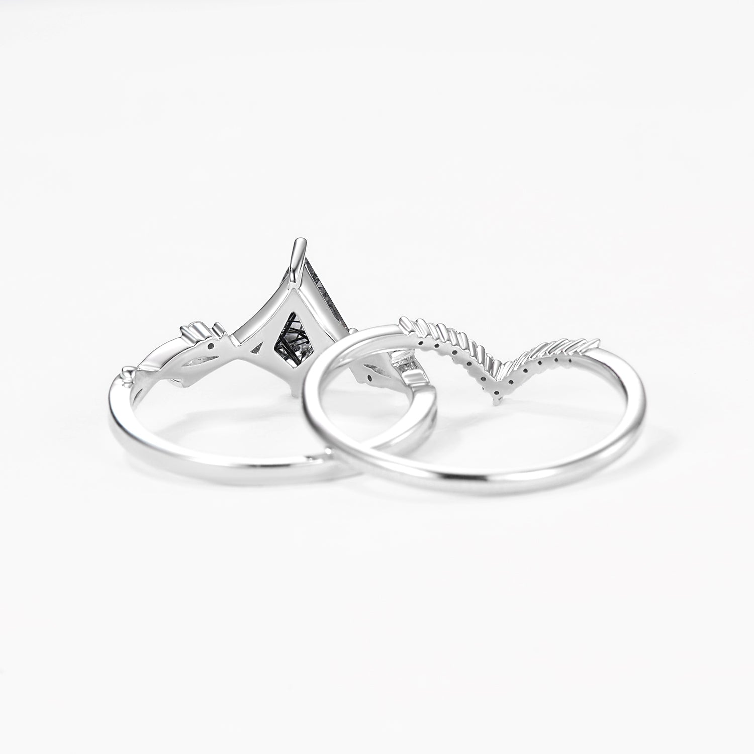 Branch Kite Cut Natural Moss Agate Minimalist Engagement Ring Sets 2pcs - Crest