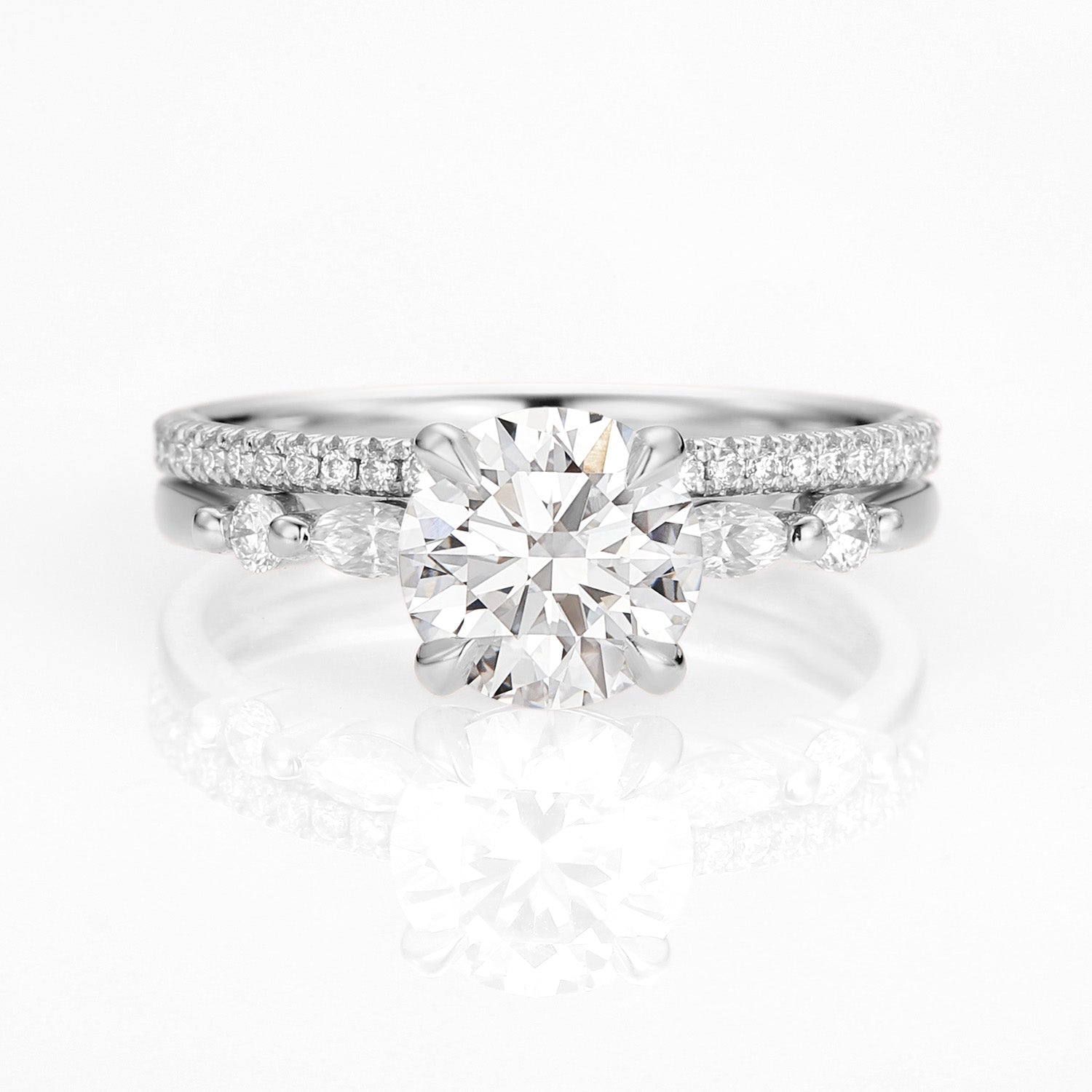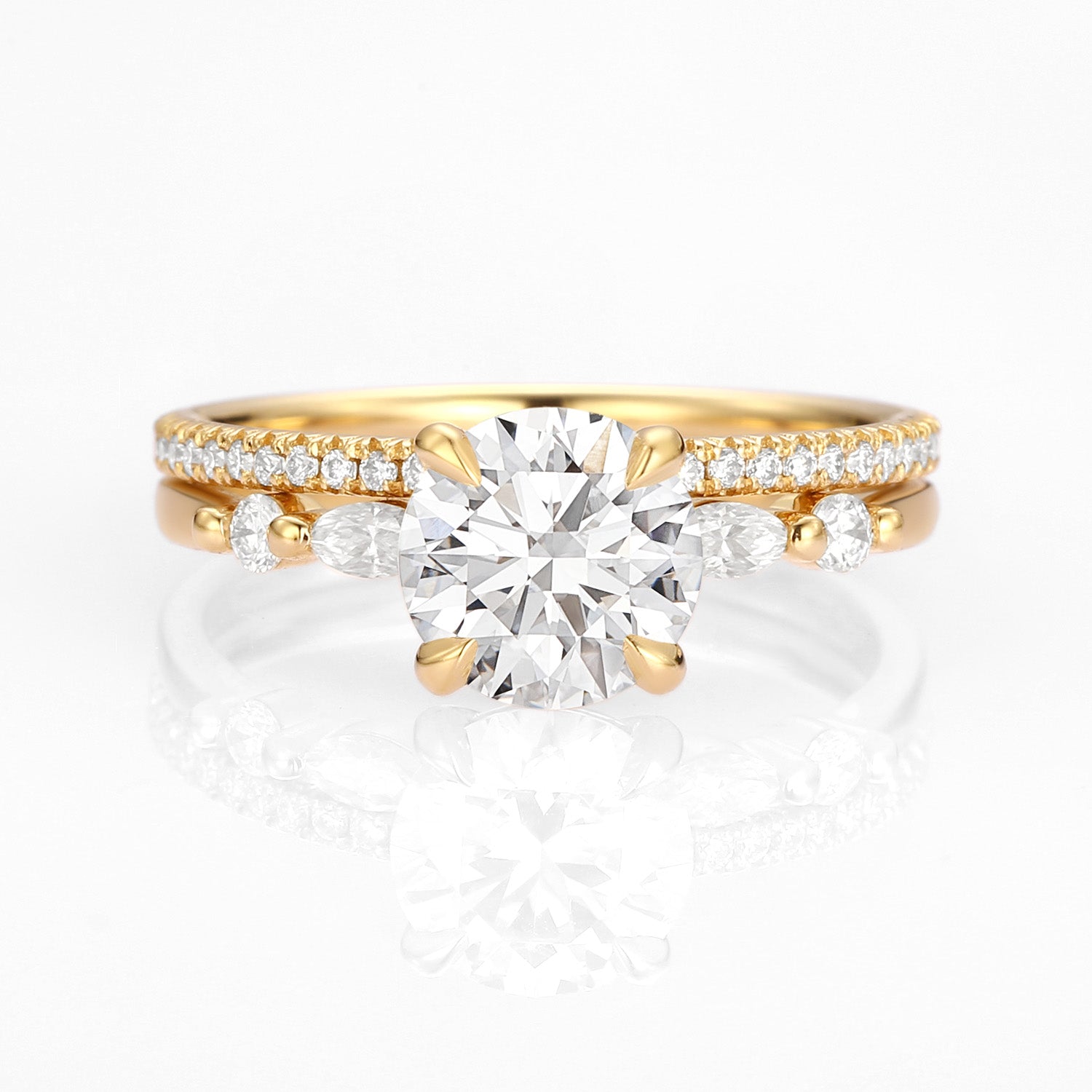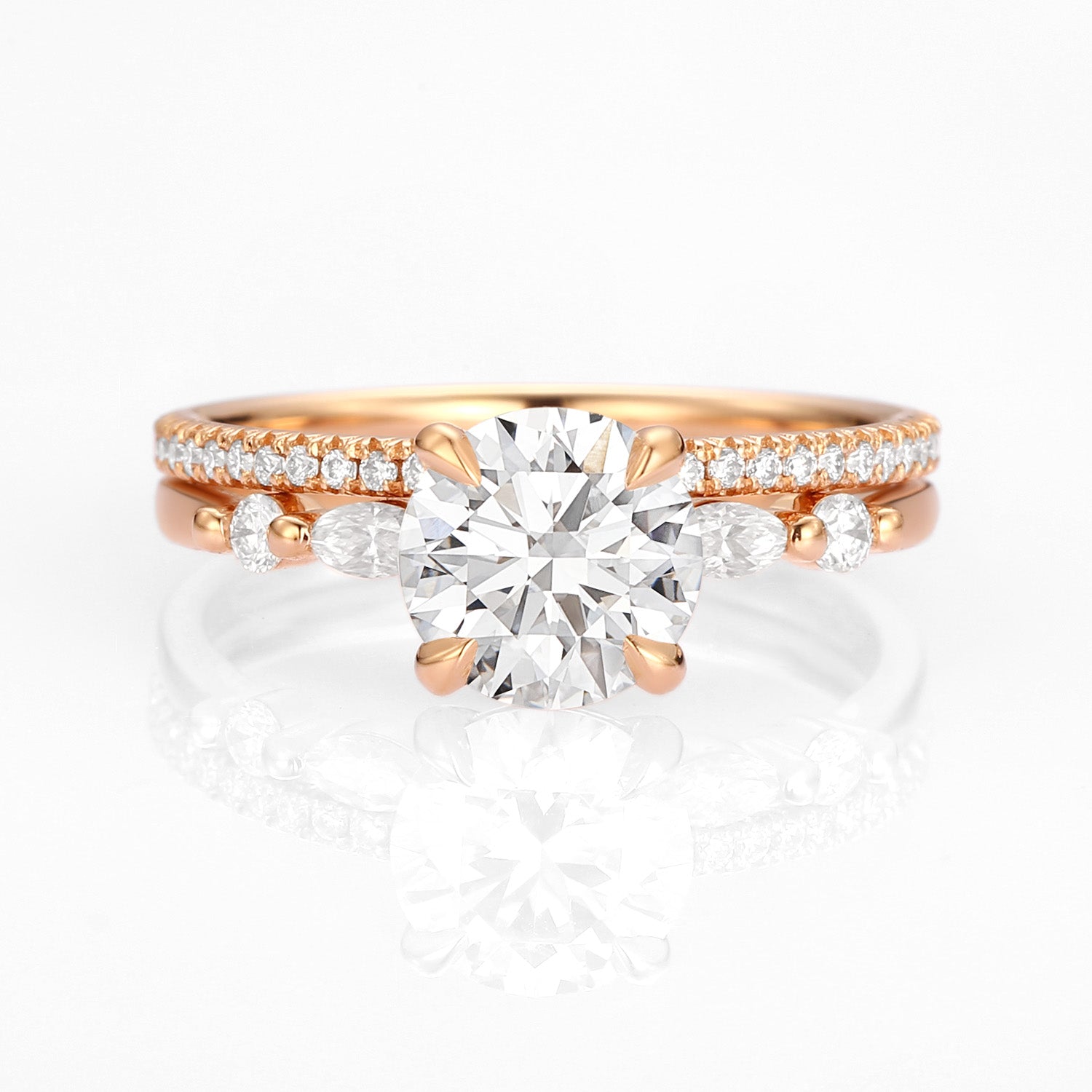 Classic Round Lab Grown Diamond 4-Prong Ring Set 2pcs - Carla