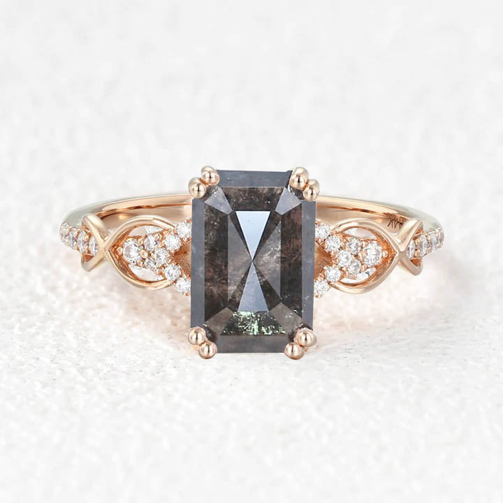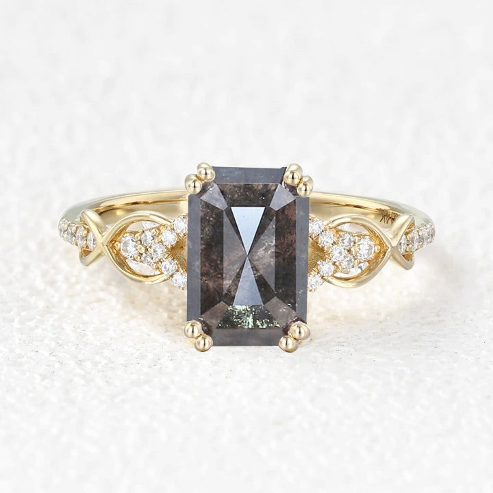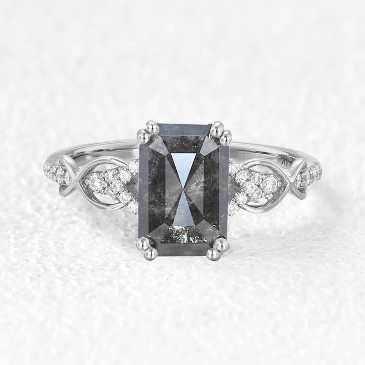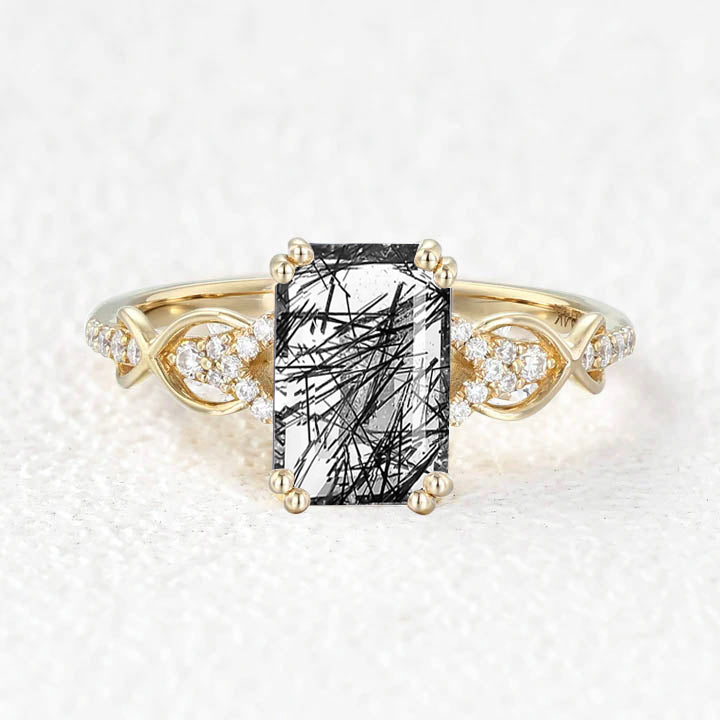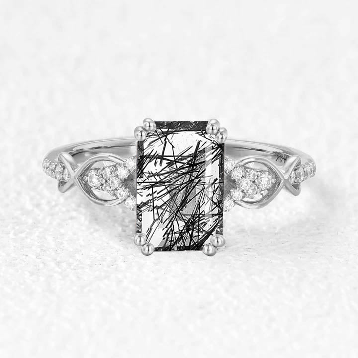 Emerald Cut Black Rutilated Quartz Infinity Ring