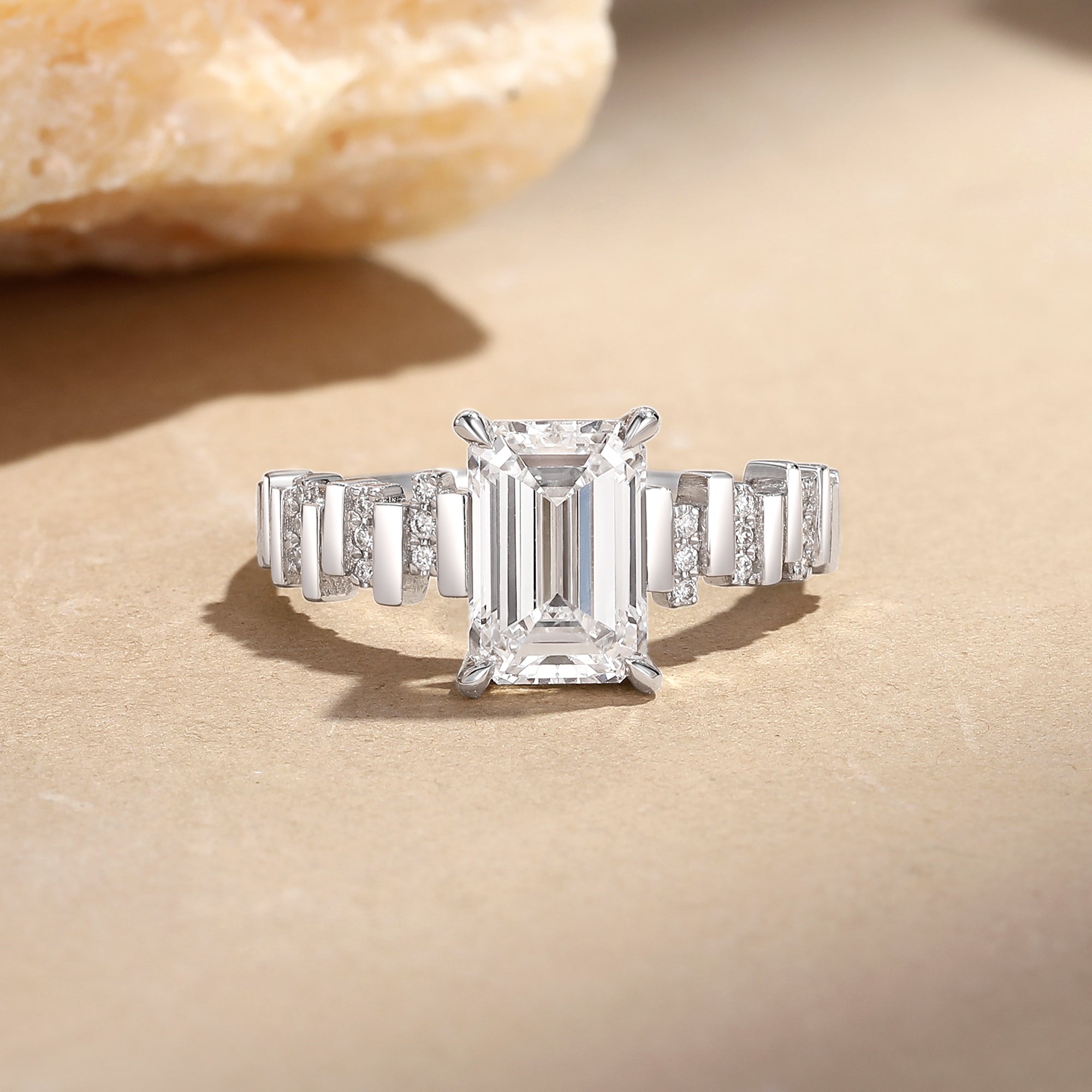 Emerald Cut Lab Grown Diamond Baguette Vintage Engagement Ring - Audrey