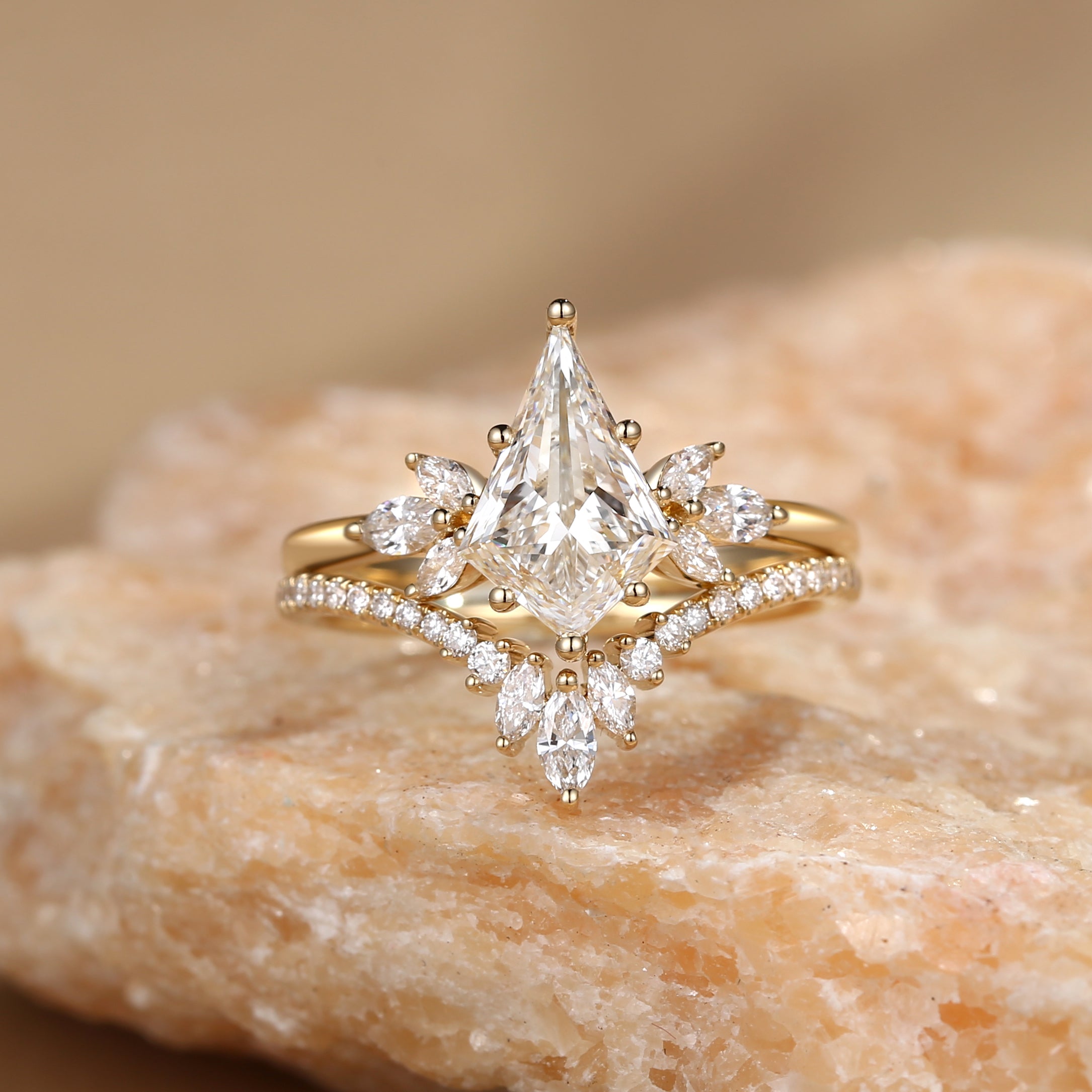Fairy Ring - Kite Cut Lab Grown Diamond Butterfly Engagement Ring Set 2pcs - Flutter