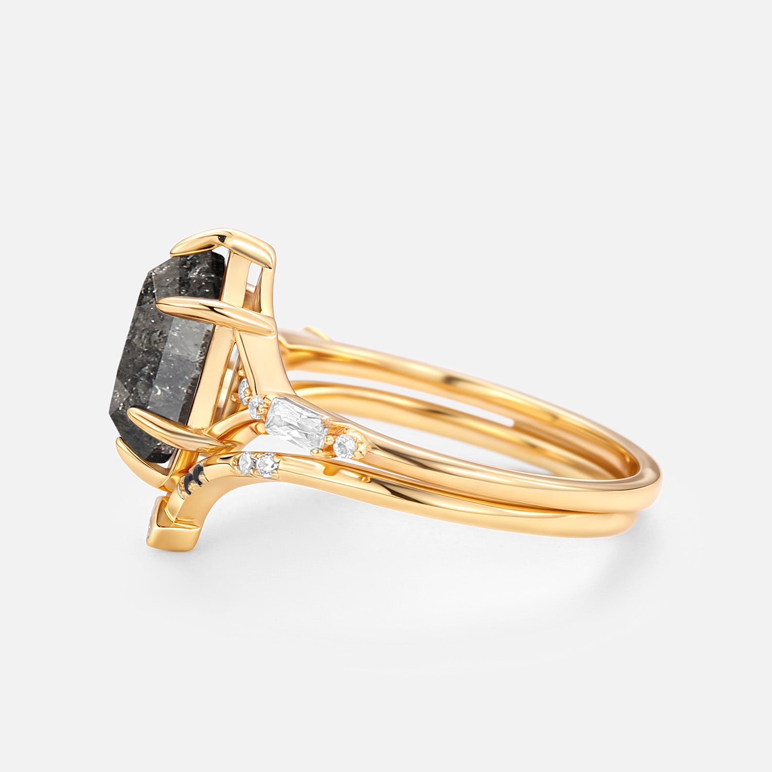 Hexagon Salt and Pepper Diamonds Ring Set 2pcs - Storm