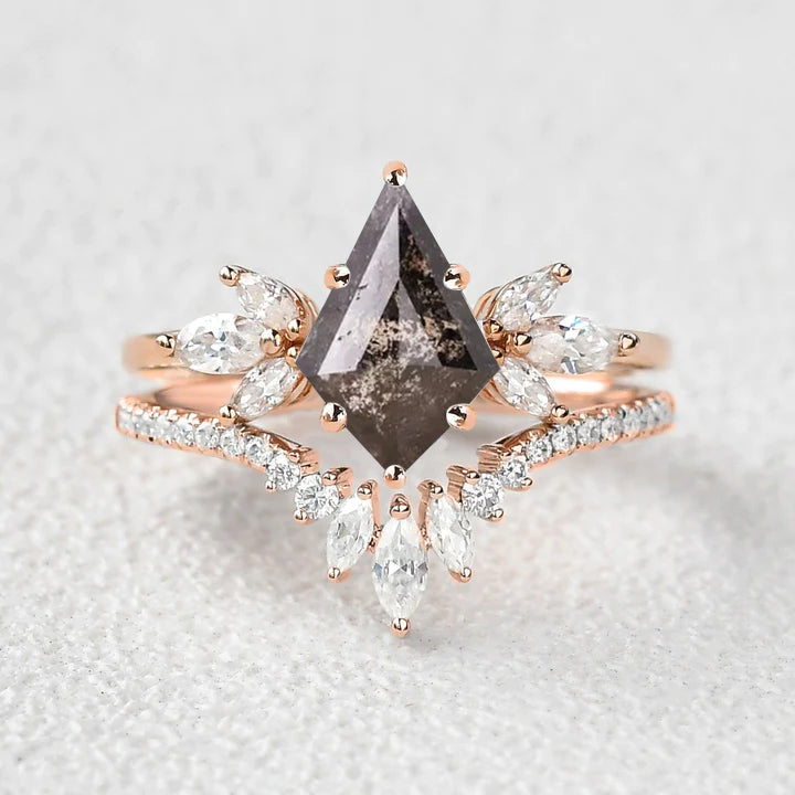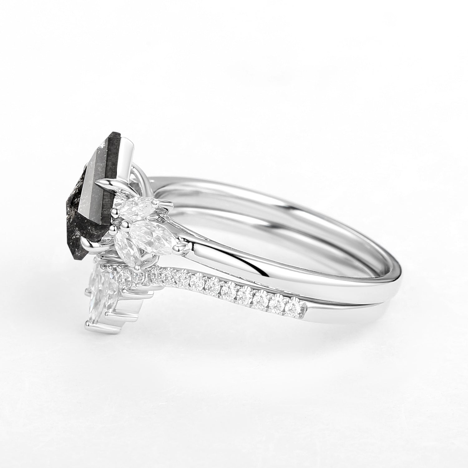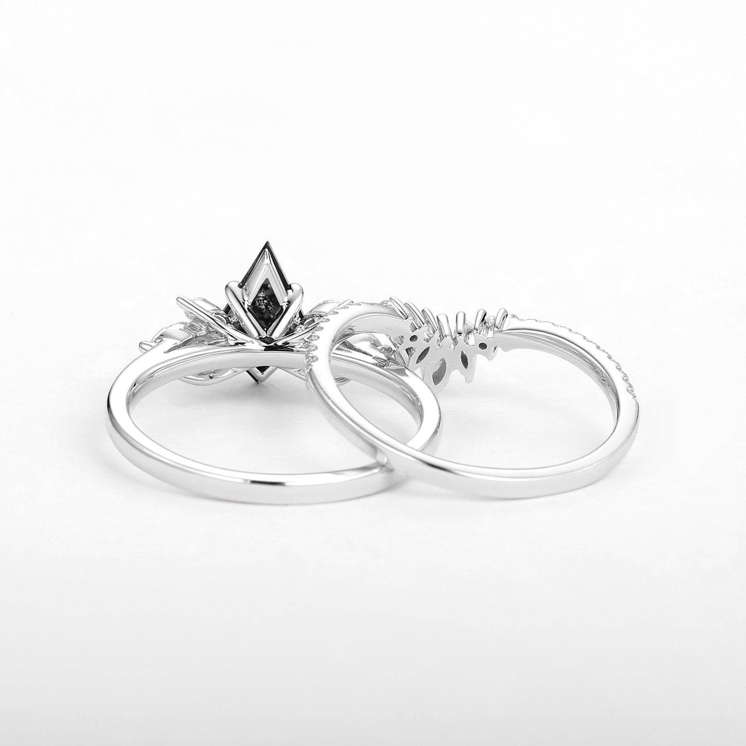 Felicegals kite Shape Engagement Diamond Ring Salt and Paper Diamond Floral Ring Natural Diamond Ring Set 2PCS Salt and Pepper Engagement Unique Kite Ring