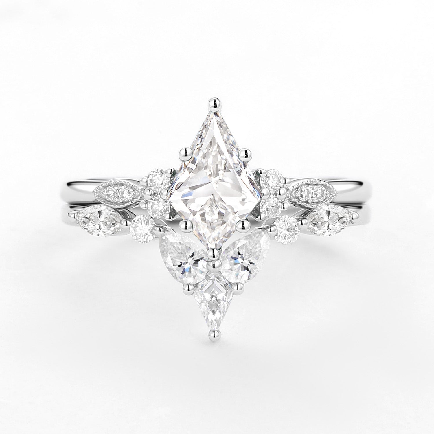 Lab Grown Diamond White Gold Engagement Ring Set 2pcs