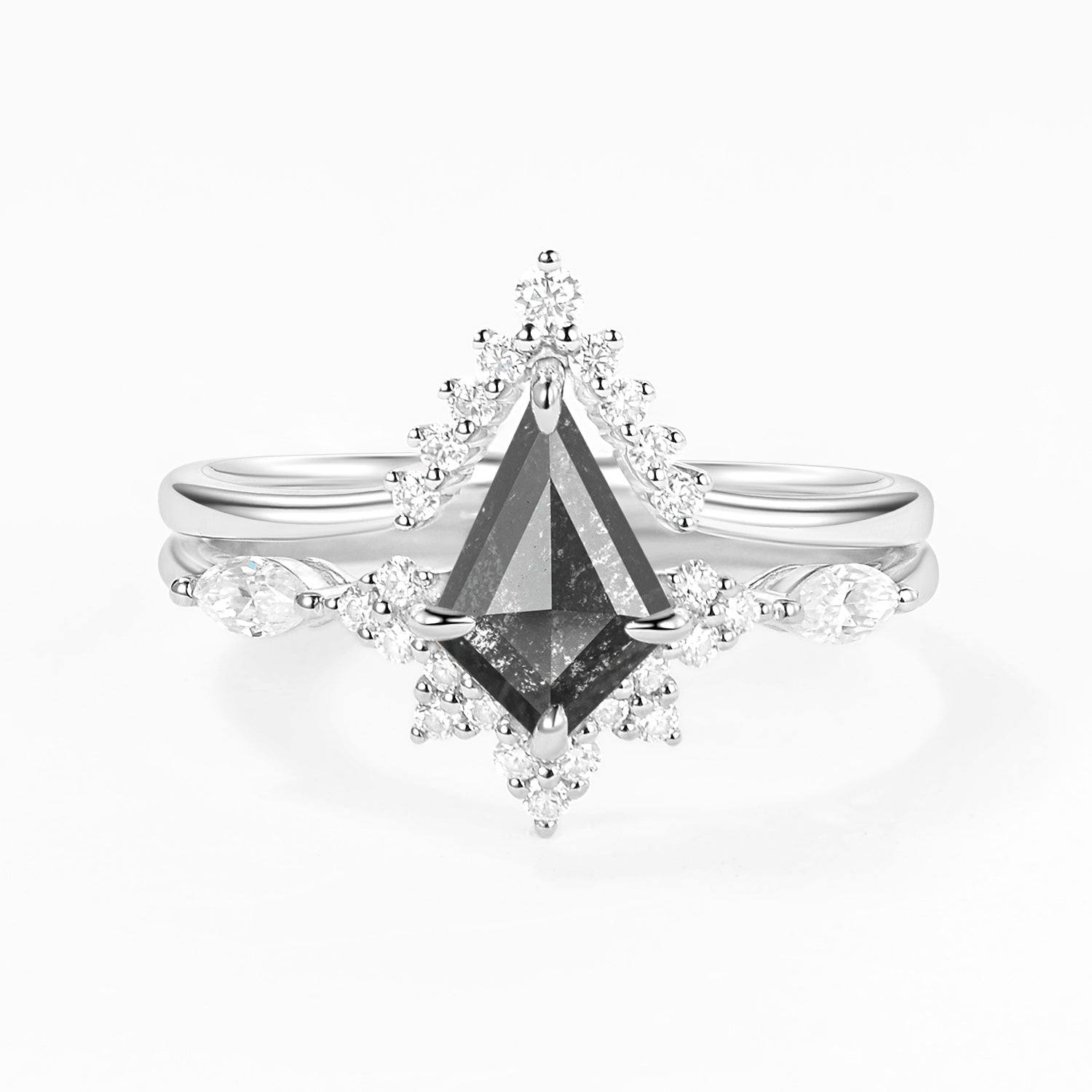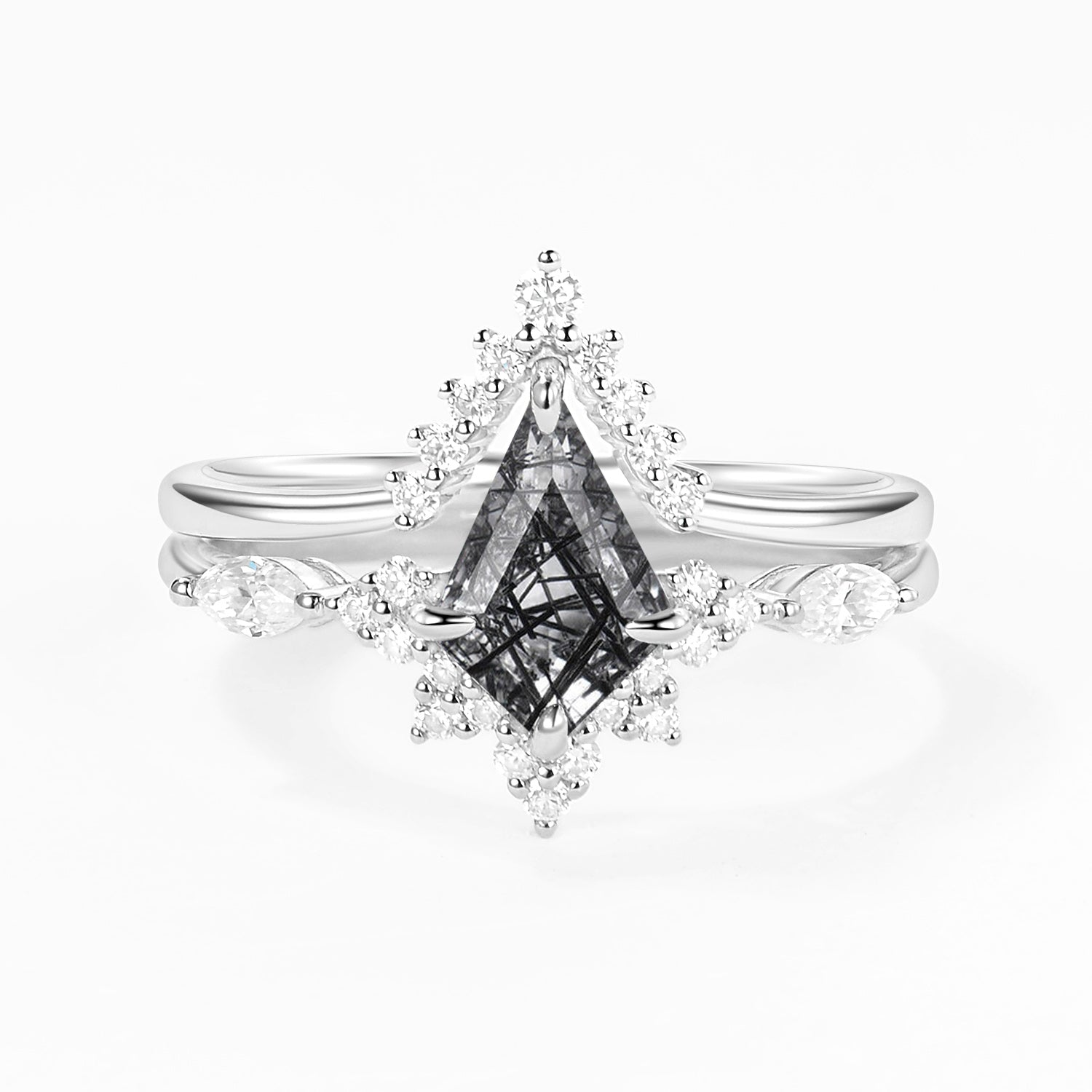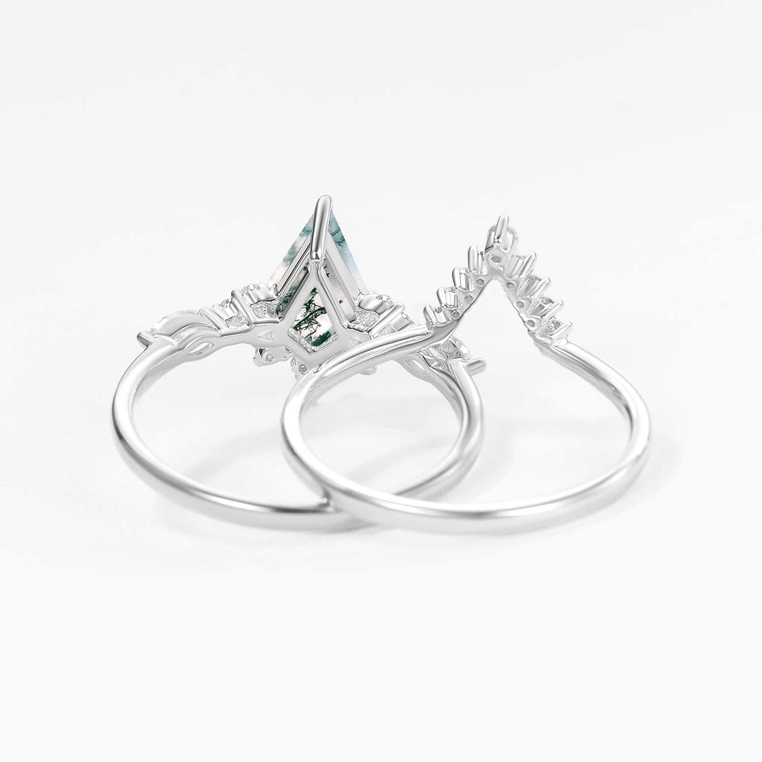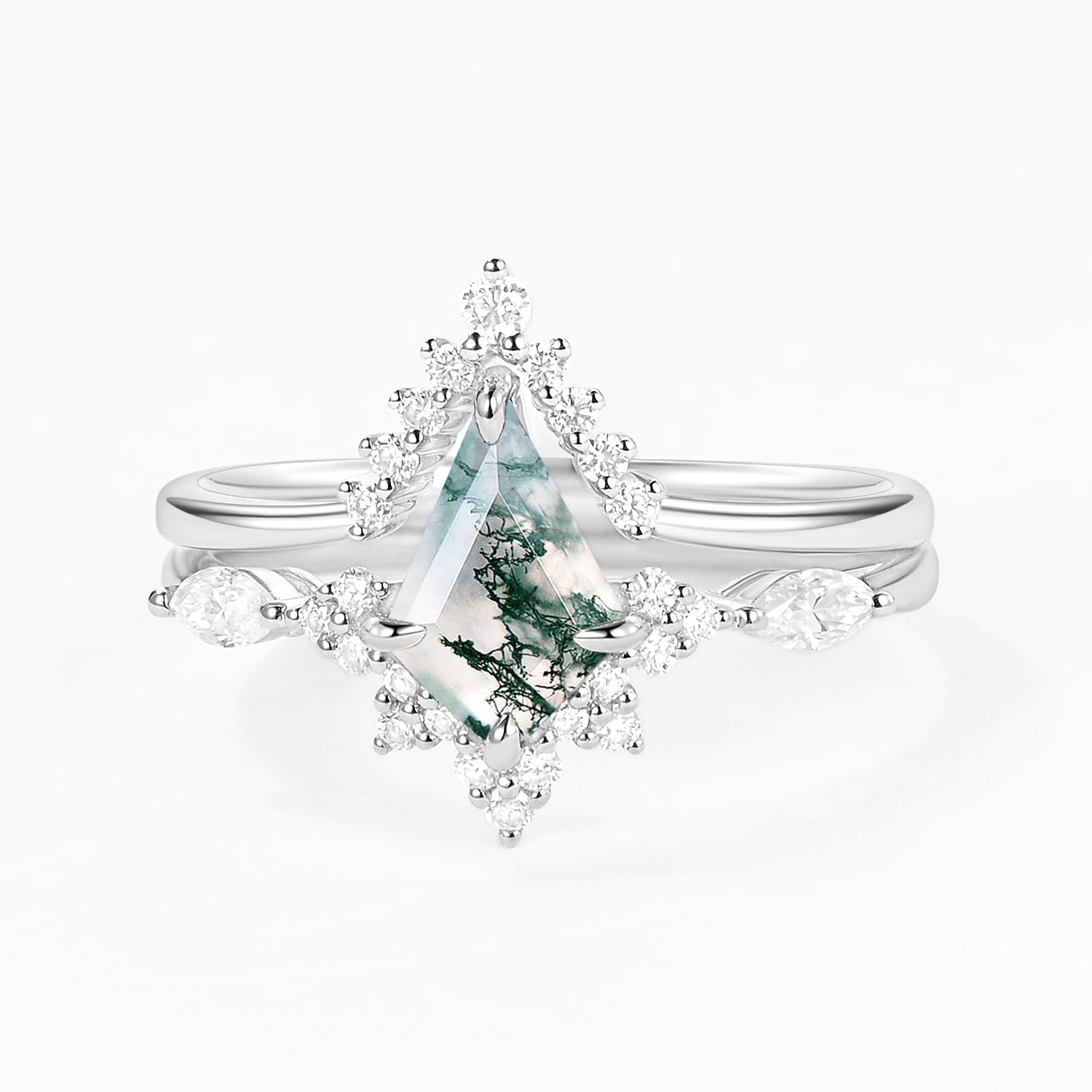 One-of-a-Kind Kite Cut Moss Agate Engagement Ring Set 2pcs