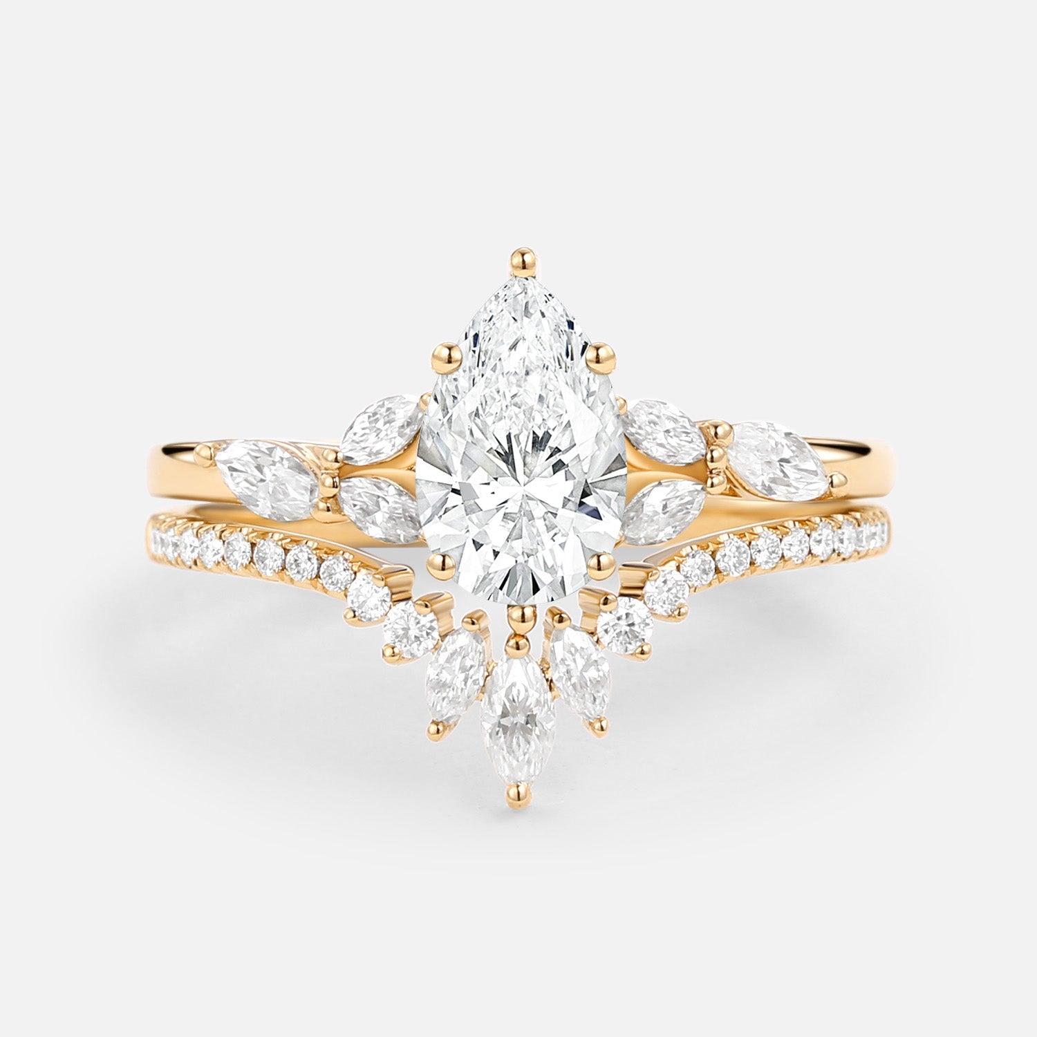 Pear Cut Lab Grown Diamond Classic Ring Set 2pcs - July