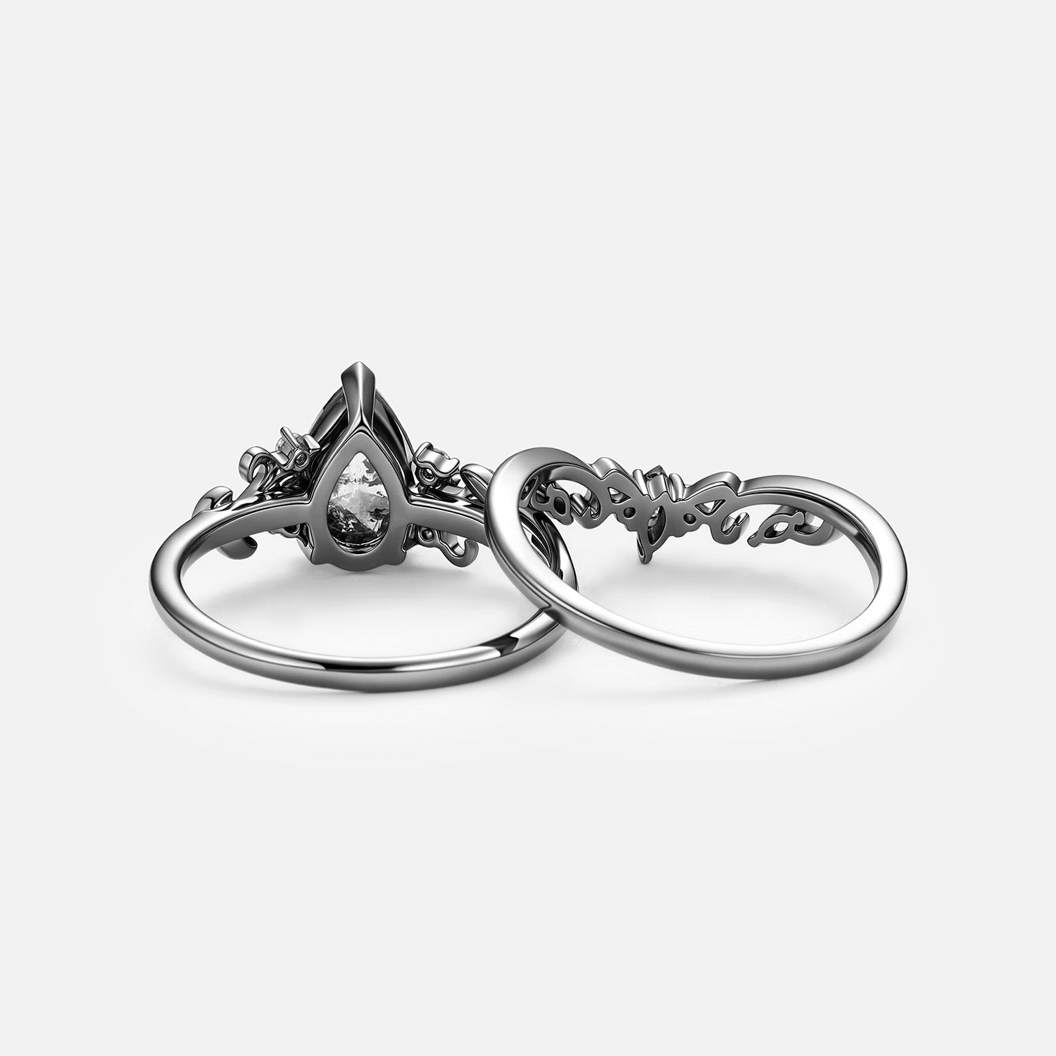 Pear Cut Leafy Salt and Pepper Diamonds Engagement Ring Sets 2pcs - Pyrrhus