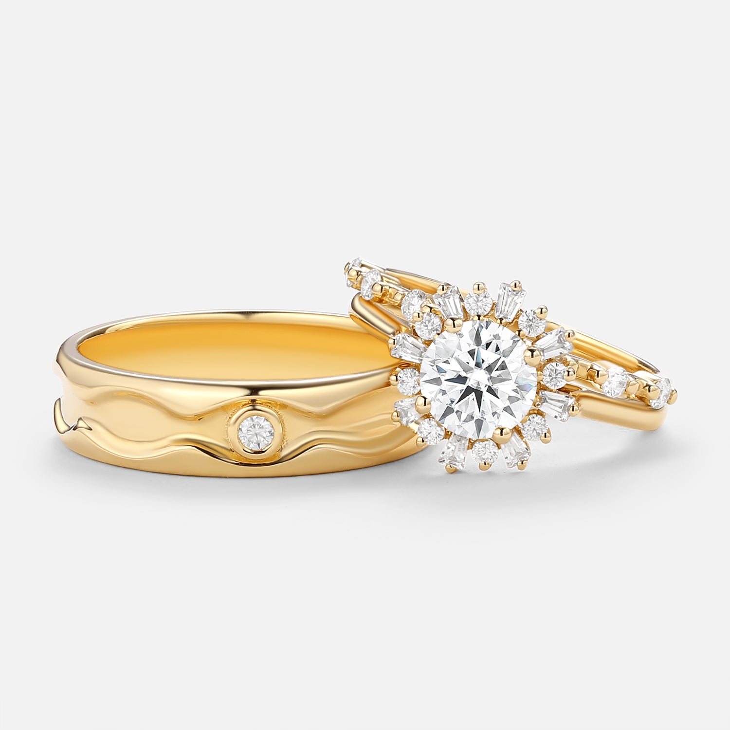 Round Moissanite Halo Floral Ring Set 3pcs - Sol