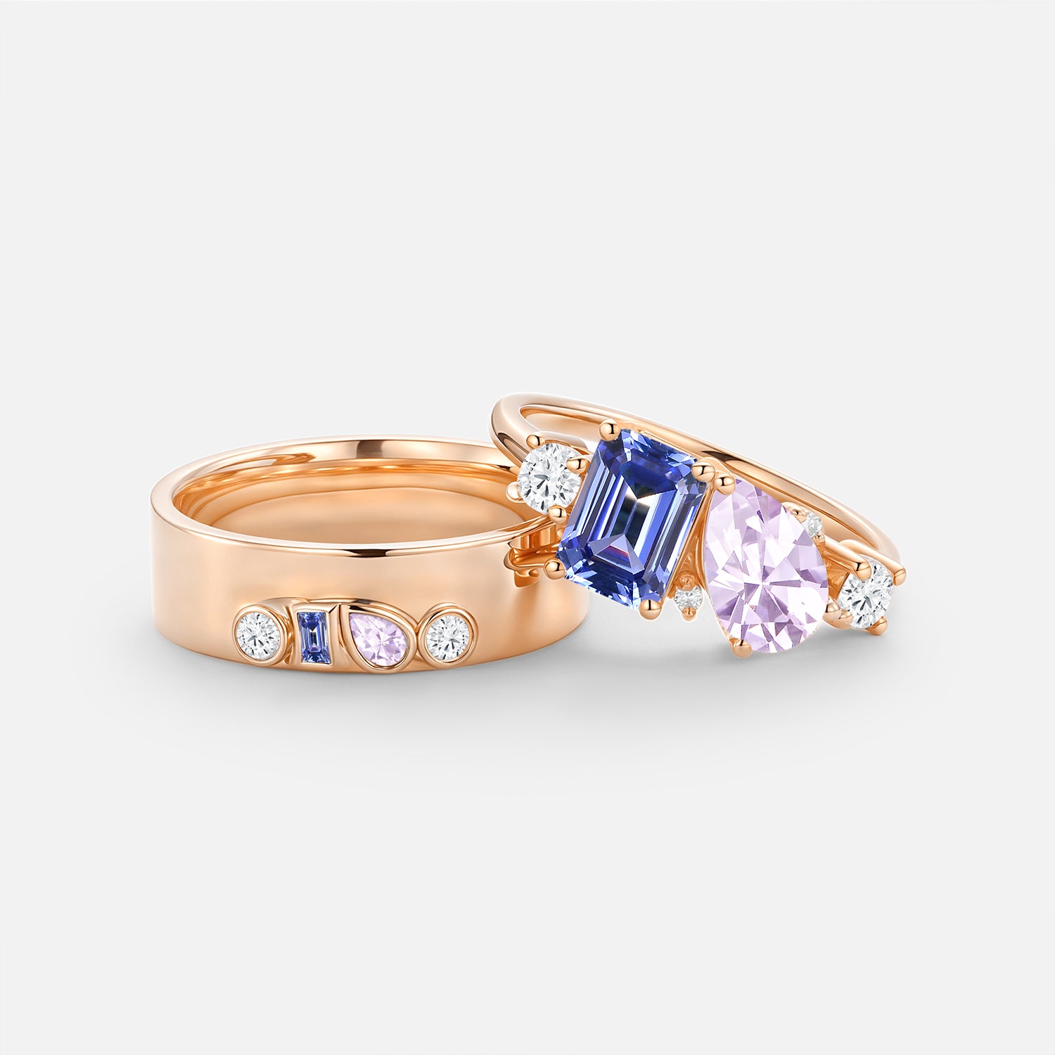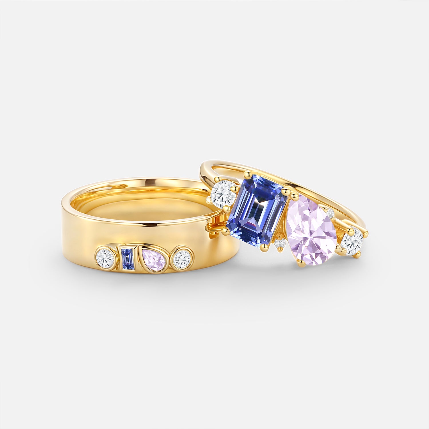 Toi et Moi Lab Sapphire Couple Ring Set 2pcs - Duet