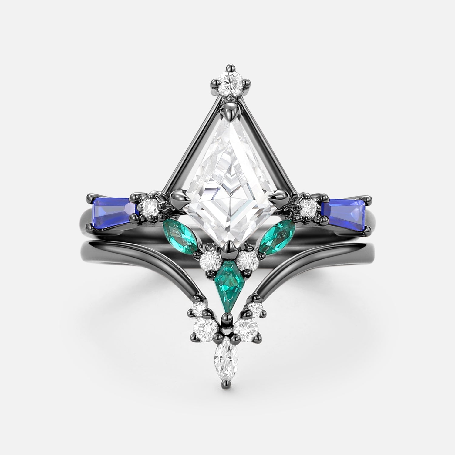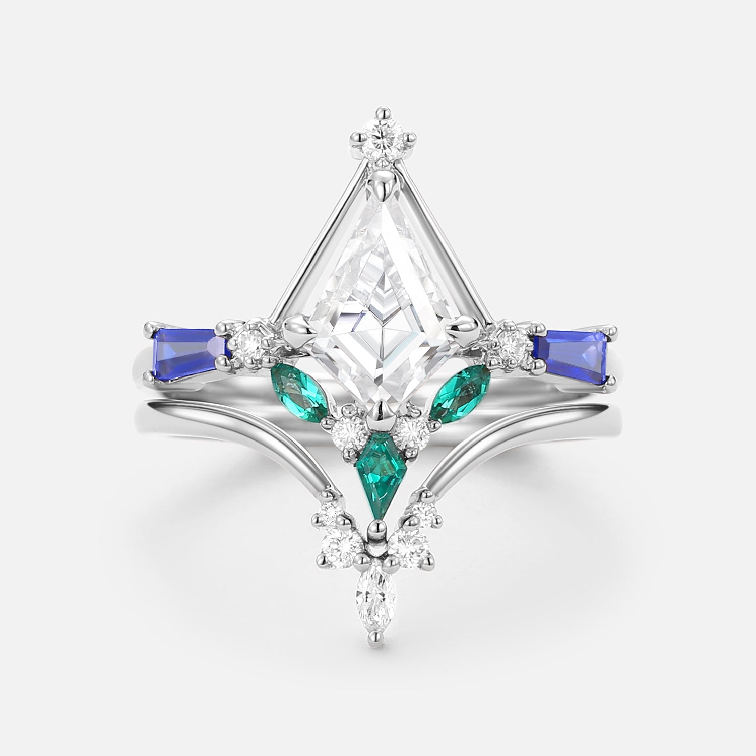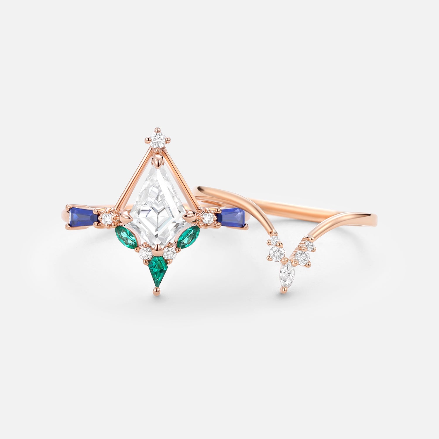 Unique Kite Cut Moissanite Curved Engagement Ring Set 2pcs