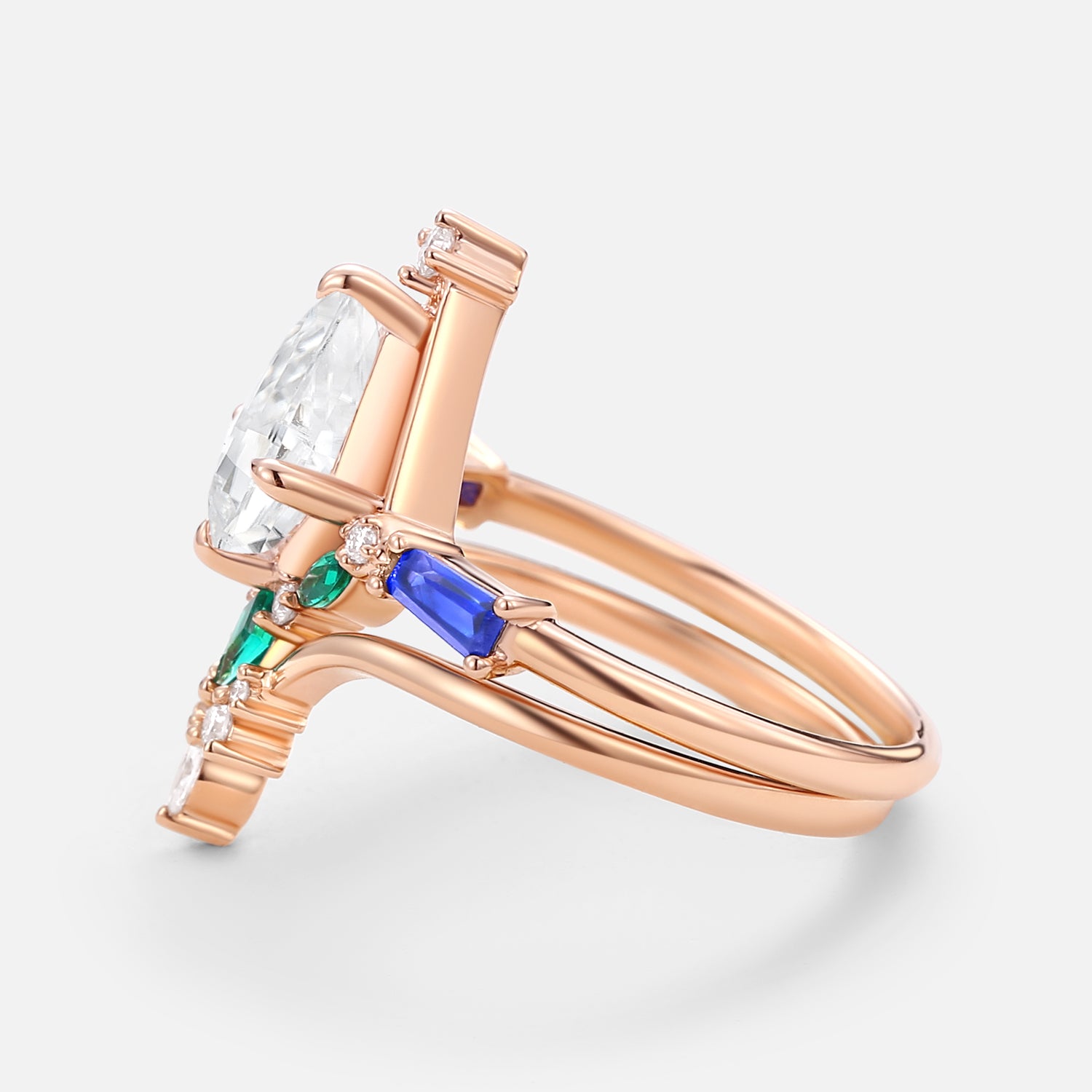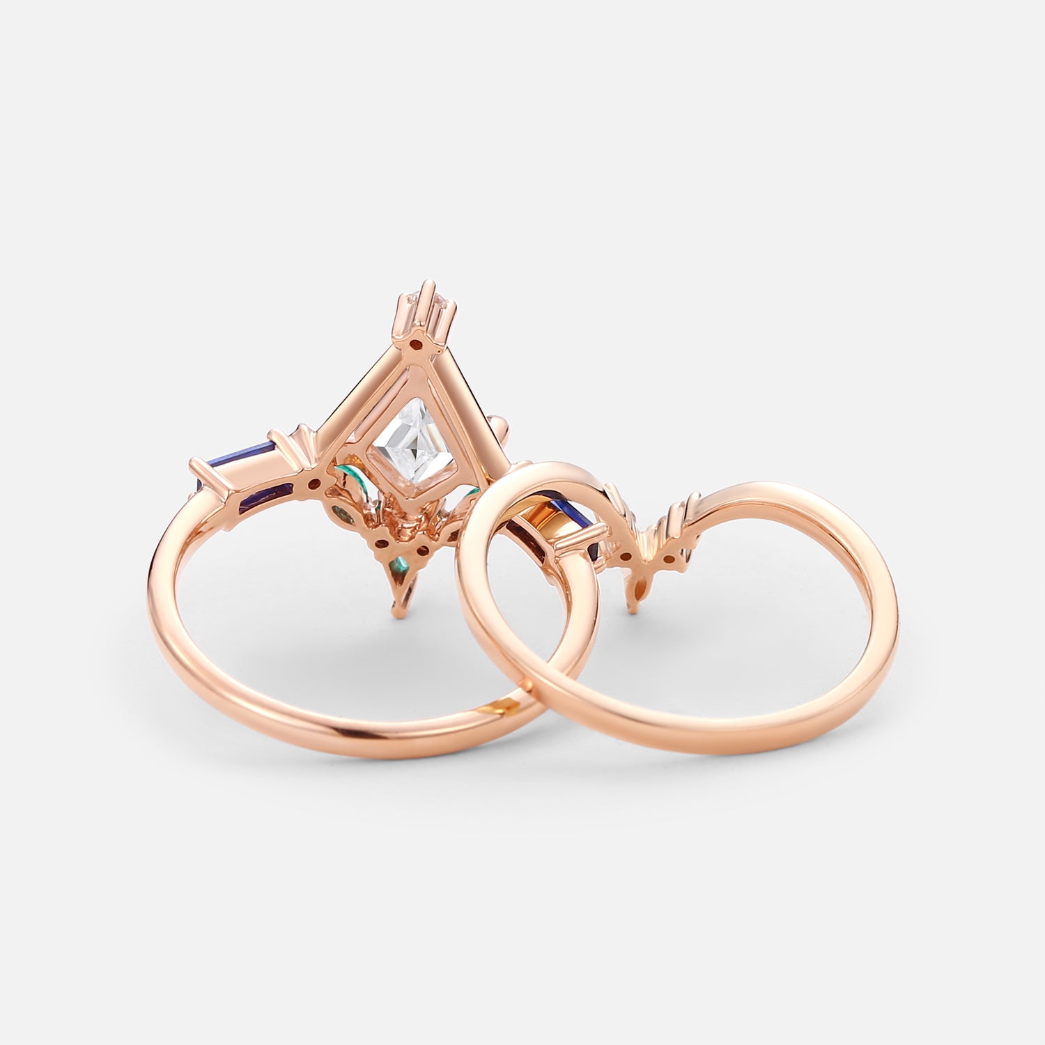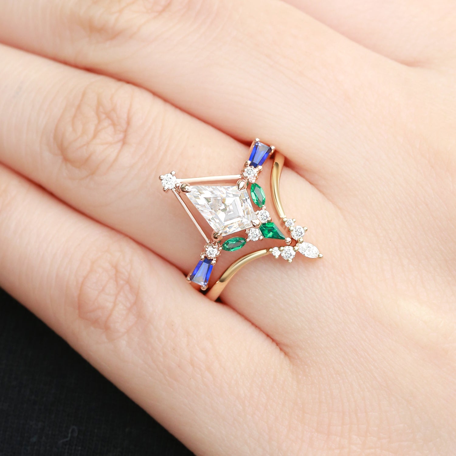 Unique Kite Cut Moissanite Curved Engagement Ring Set 2pcs