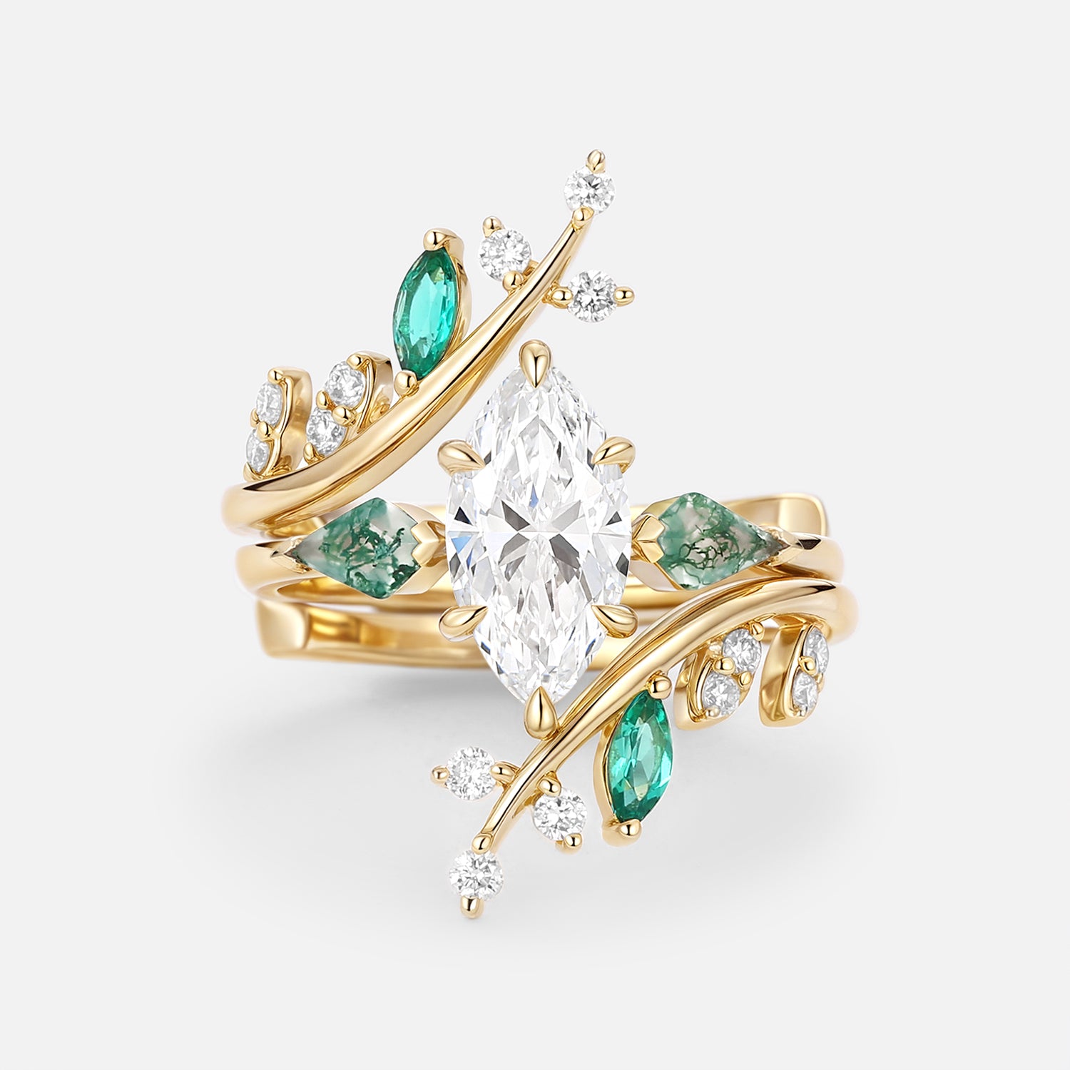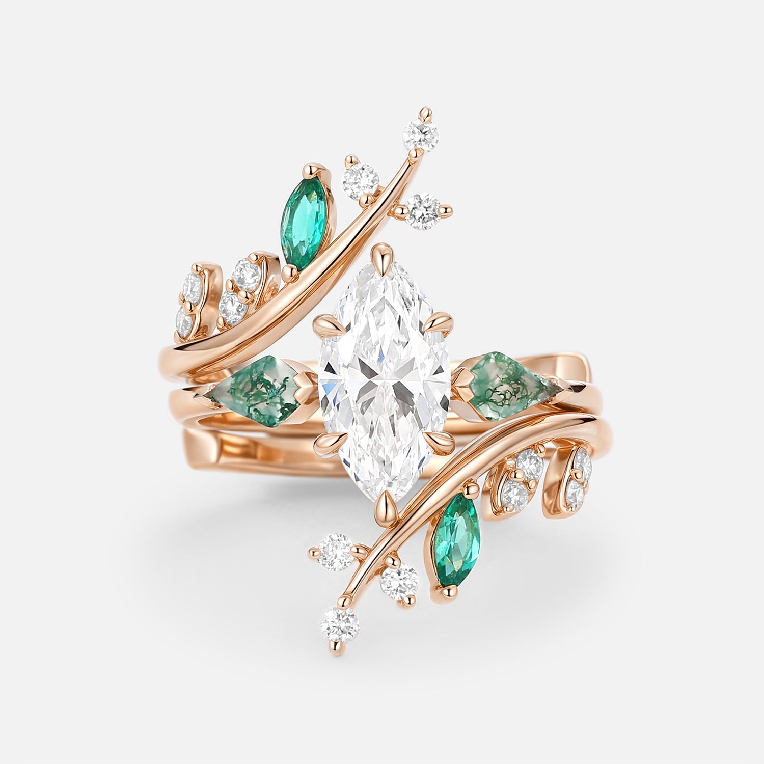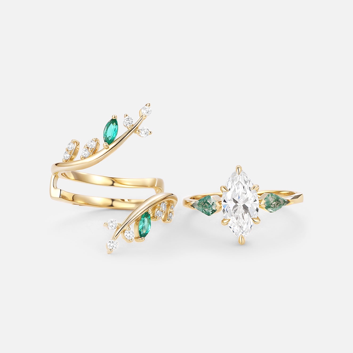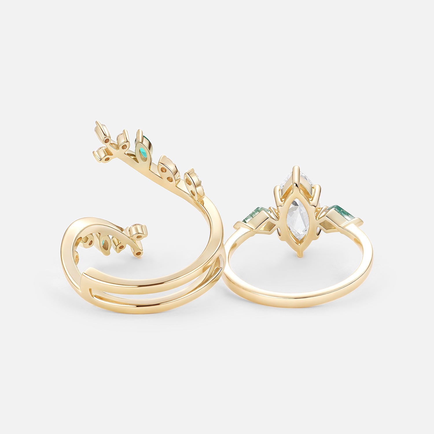 Unique Marquise Cut Lab Diamond Cage Leafy Engagement Ring Sets 2pcs - Knight